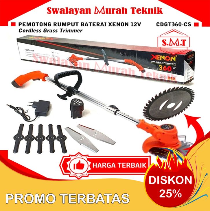 XENON CDGT360 CS MESIN POTONG RUMPUT BATERAI CORDLESS 12VOLT CAS CHARGER 2 BATERY + MATA BULAT