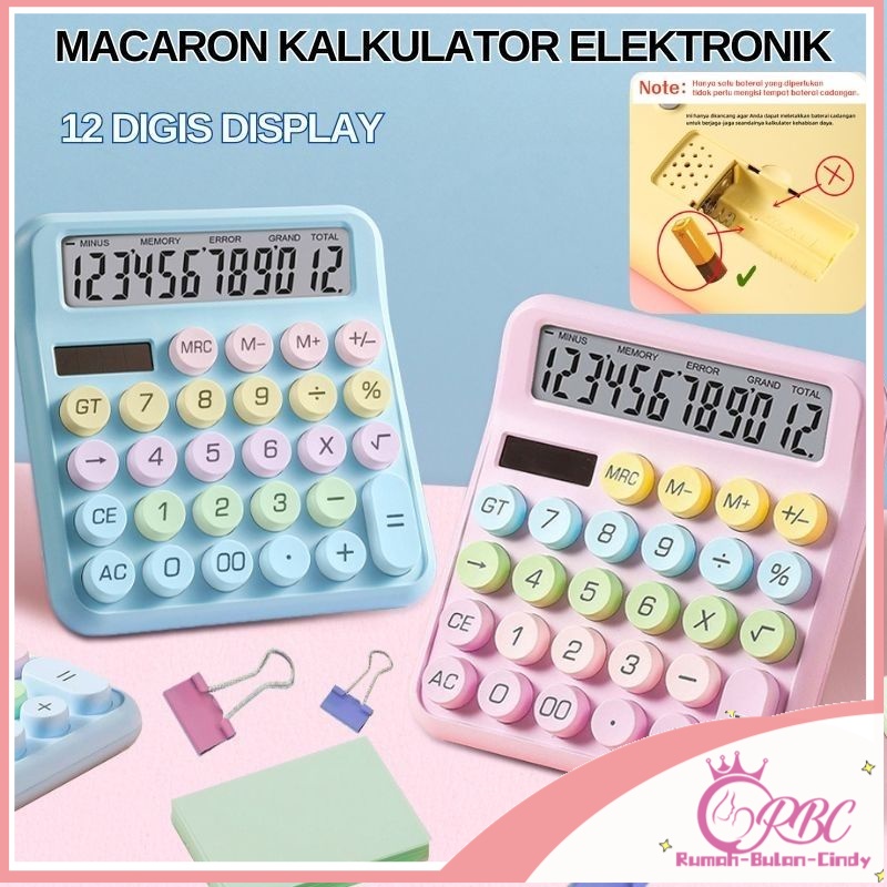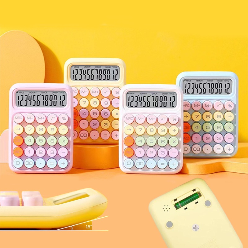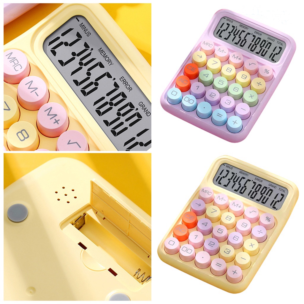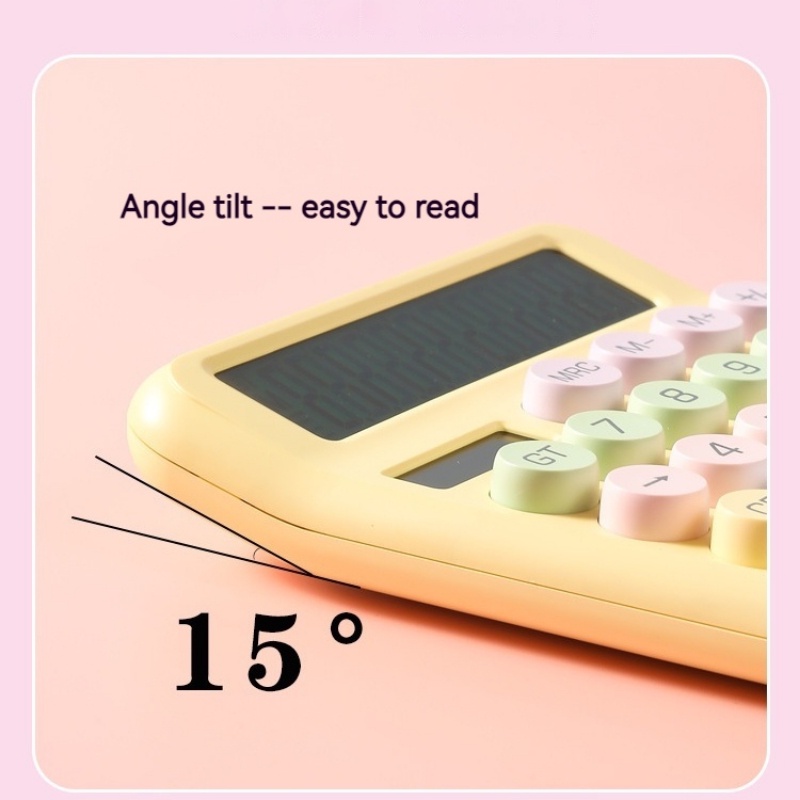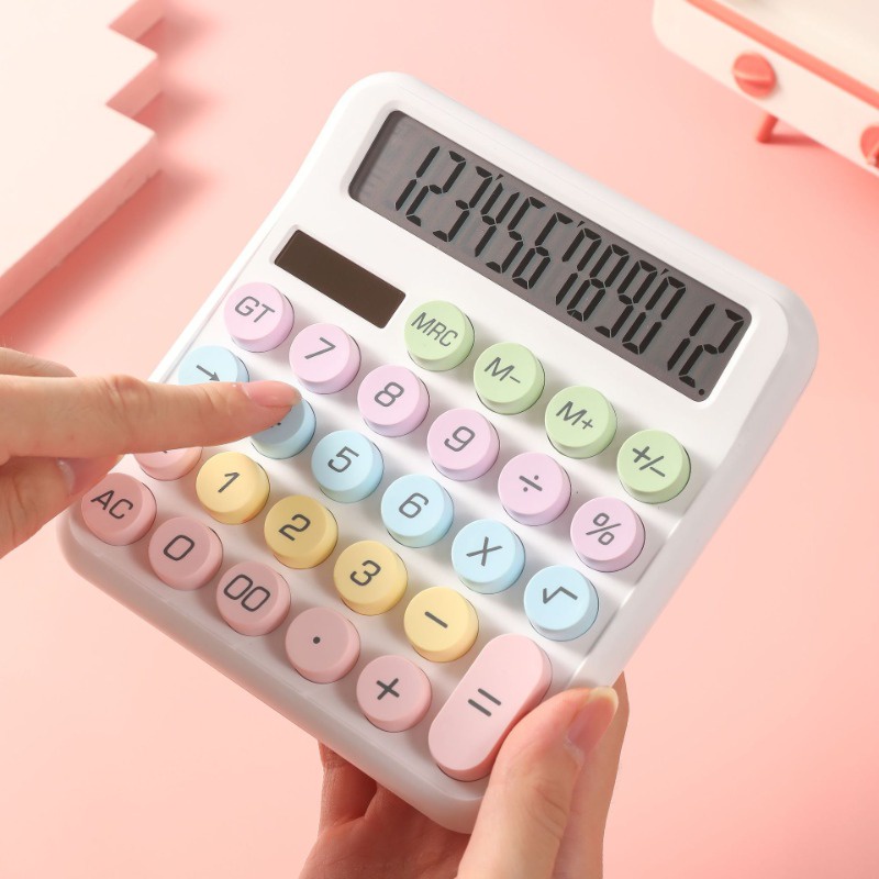 【Penjual Lokal】Korea Seri Dopamin Warna Permen Kalkulator Surya 12 Digit Tampilan Besar Dual Power Mekanik Dot Keyboard