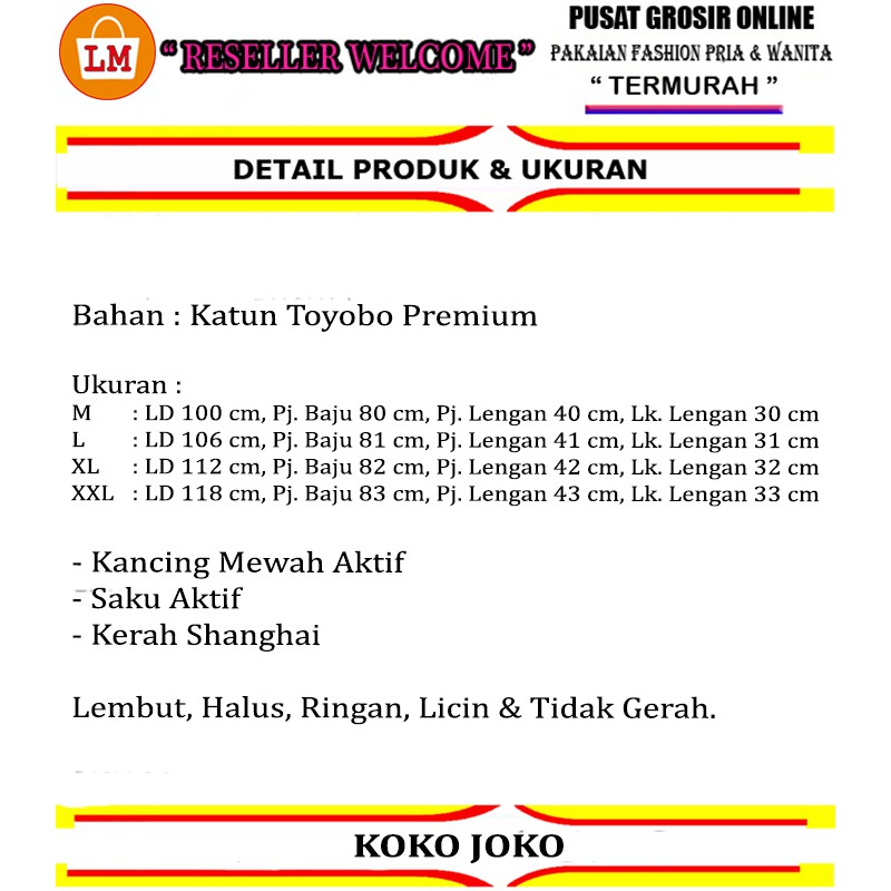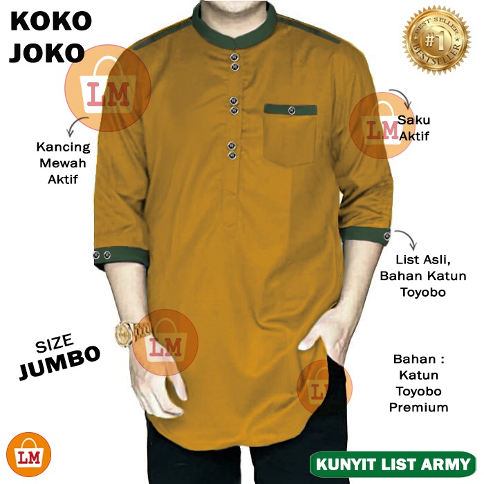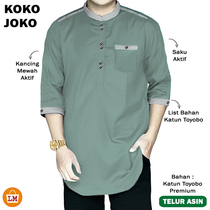 Baju Pria Muslim KOKO JOKO Bahan Katun Toyobo Premium Lengan Tanggung 3/4 TERBARU