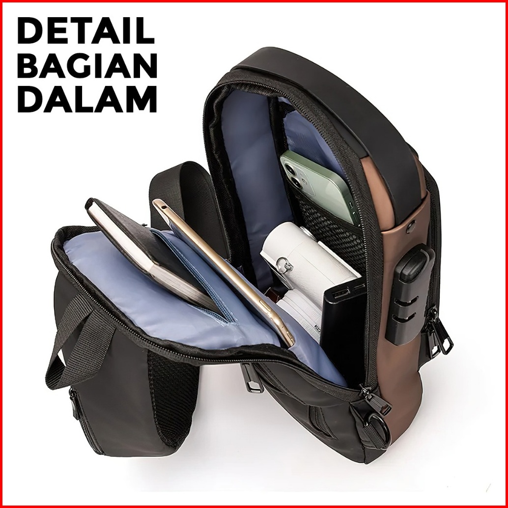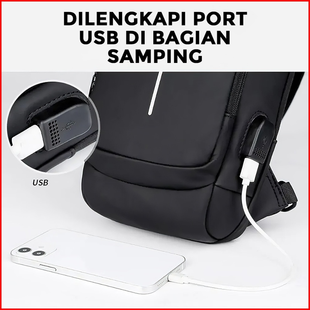 Tas Selempang 3 In 1 Motif Polos Keren Tas Fashion Multifungsi Pria Sport Usb Waterproof - Lw 15