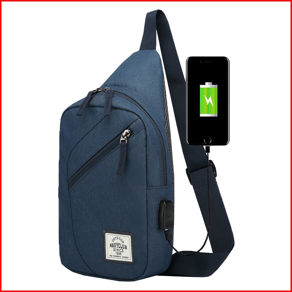 Navy Club Tas Selempang Travel Usb Port Sling Bag Tas Pria Tas Selempang Pria Ejcj