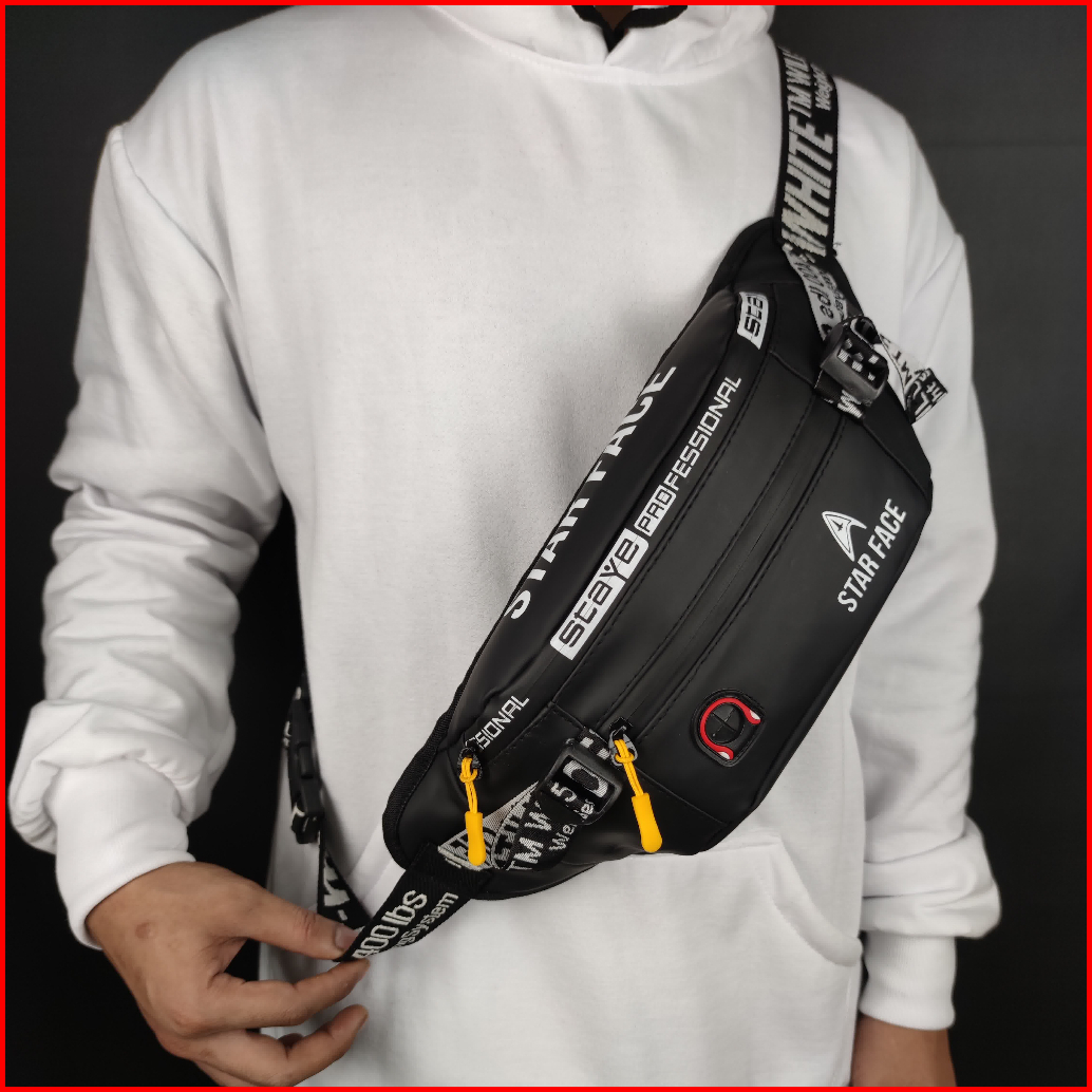 Tas Selempang Pria Anti Air Terbaru Bahan Waterproof Tas Pinggang Waistbag Sporty