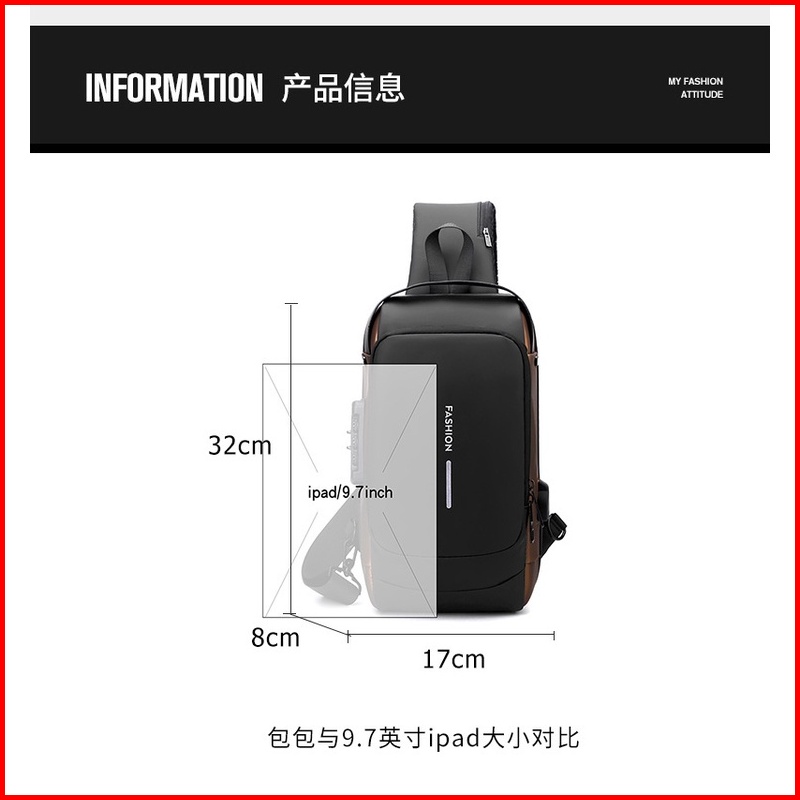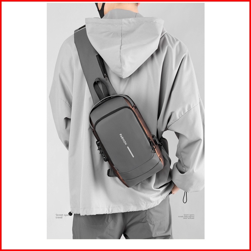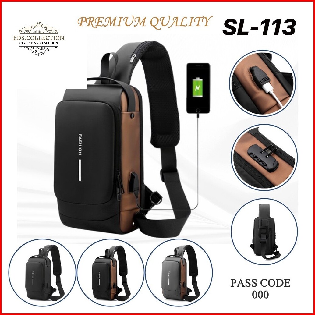 Sl113 - Tas Selempang Pria Anti Ar Premium Sling Bag Usb Port Waterproof Distro Import Slempang Cowok Terbaru