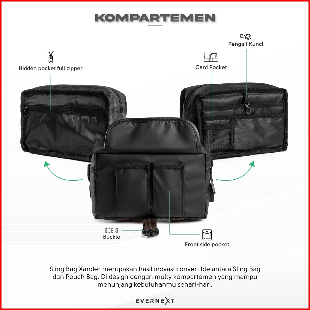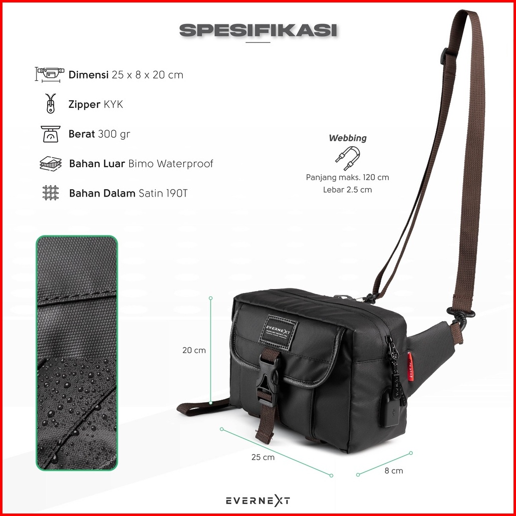 Tas Selempang Sling Bag Waterproof Distro Original Slempang Pria Anti Air Waistbag Pinggang Cowok Tactical Import Xander
