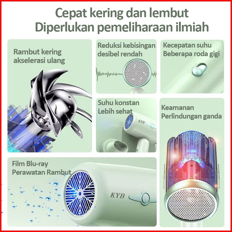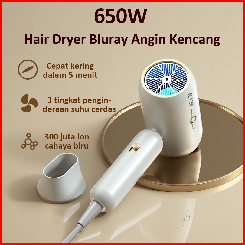 2025 Kyb Hair Dryer Negative Ion Portable Low Watt 650w Pengering Rambut Hair Protection Quick Drying