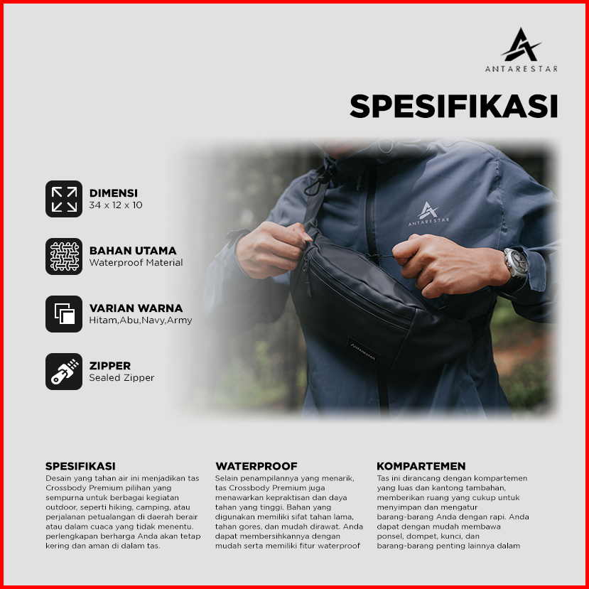 Tas Selempang Anti Air Tas Slempang Waterproof Waist Bag Crossbody Premium Antarestar