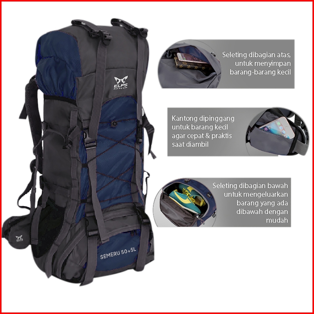 Elfs Active Tas Gunung Carrier 50 5l Ransel Tahan Air Backsupport Hiking Bag Water Resistant Bag Fk0008 Free Raincover