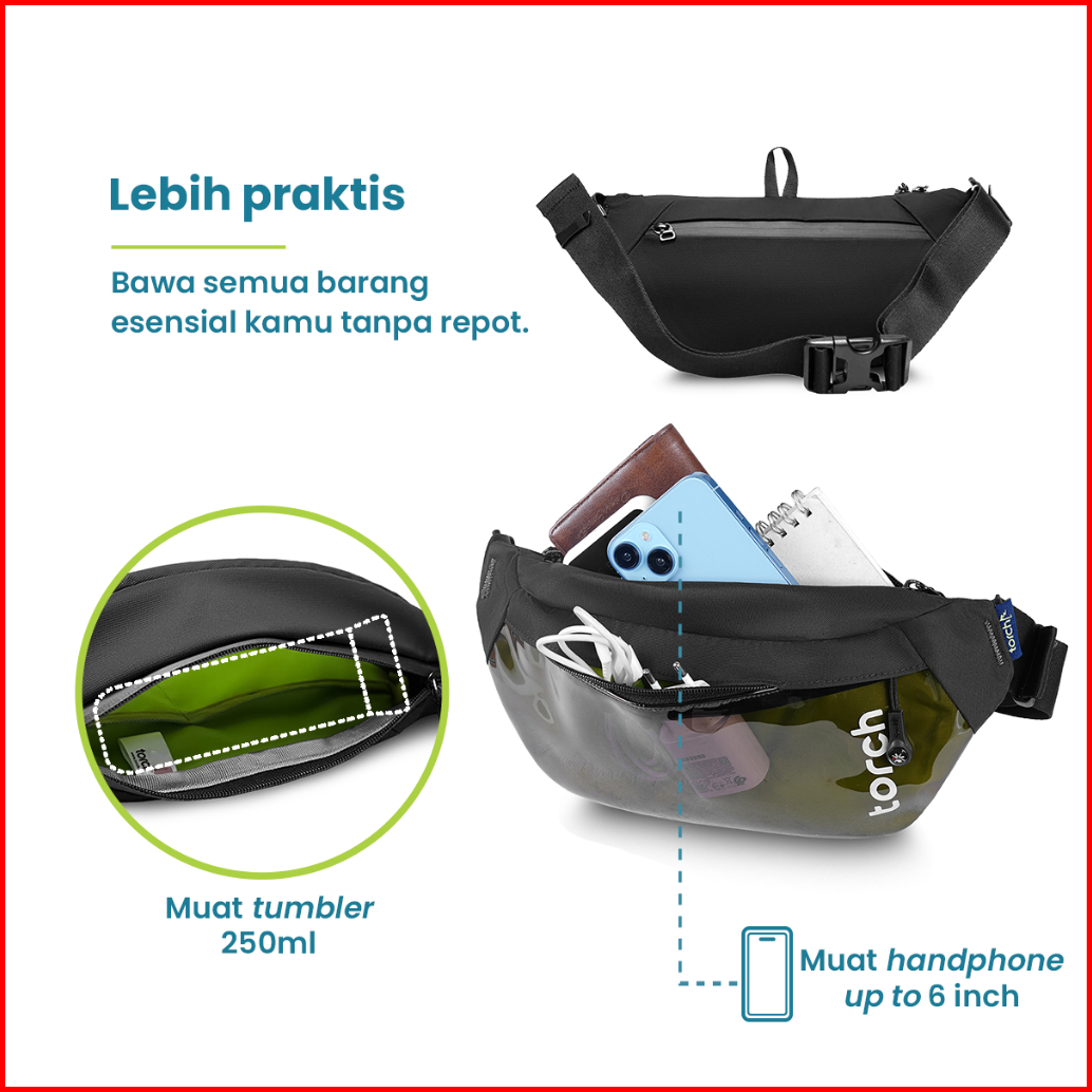 Torch Wonjin Tas Pinggang Selempang Konser Ringan Anti Air Pria Wanita - Waist Bag Waterproof Darklucent
