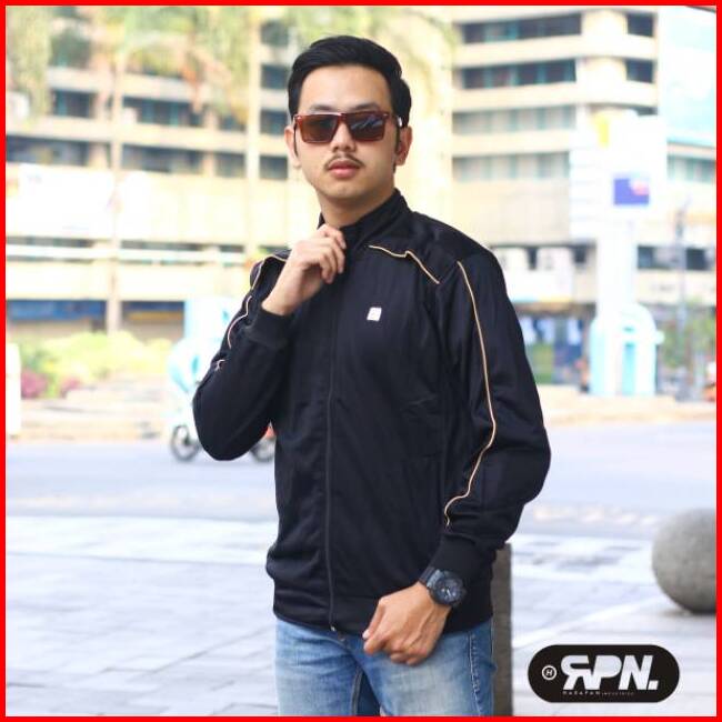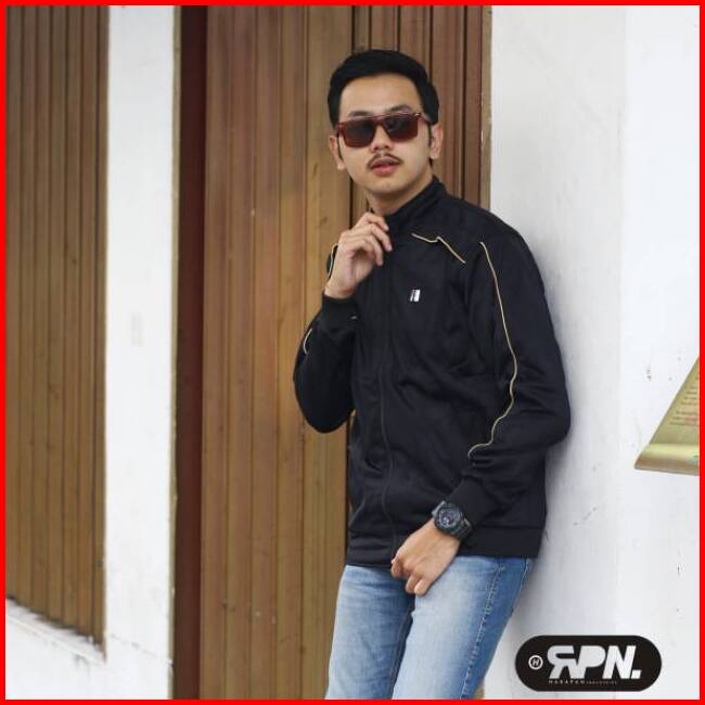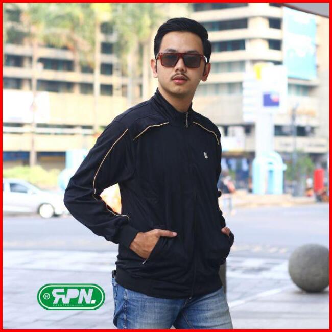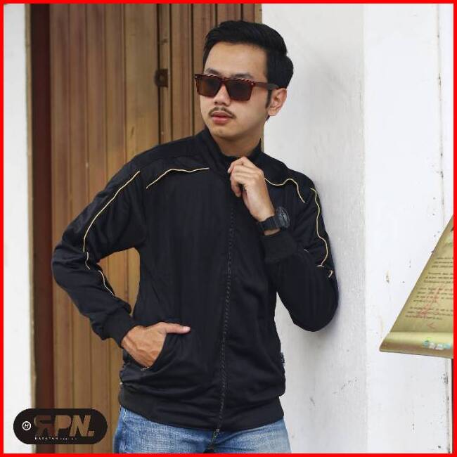 Jaket Modis Sporty List Saku Pakai Resleting Bahan Tidak Panas Polos Unisex