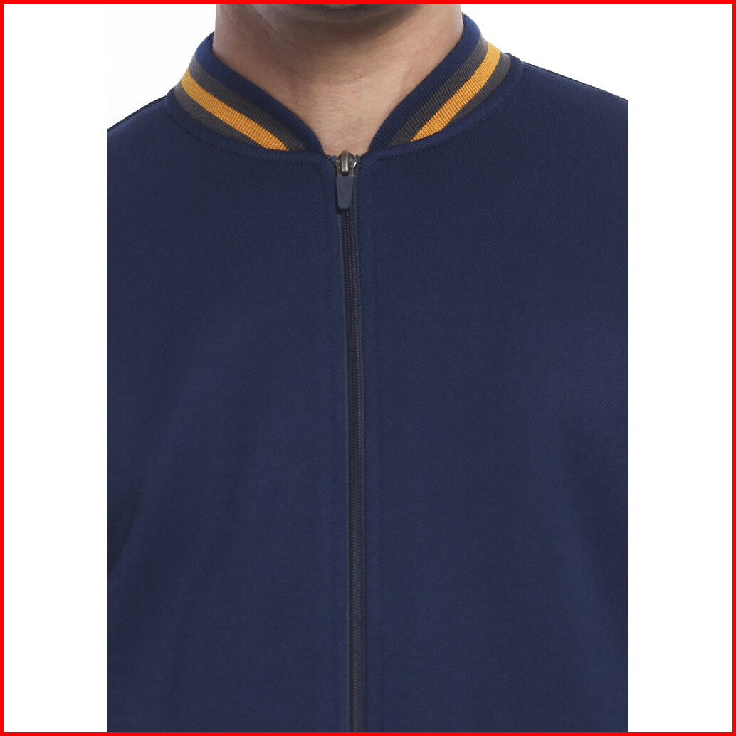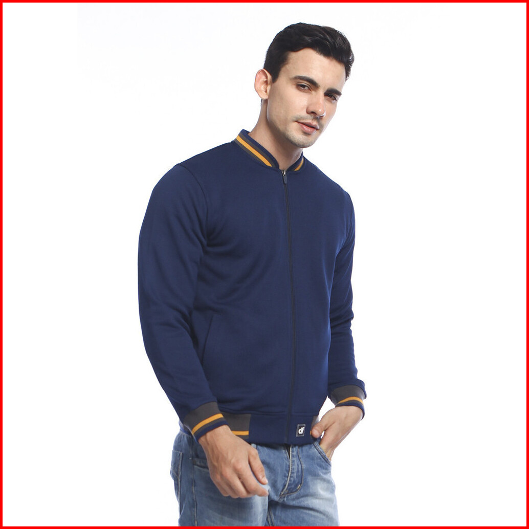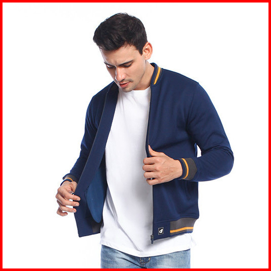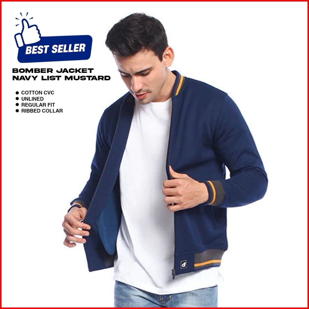 D F Cvc Jaket Pria Bomber With Mustard Strip - Navy