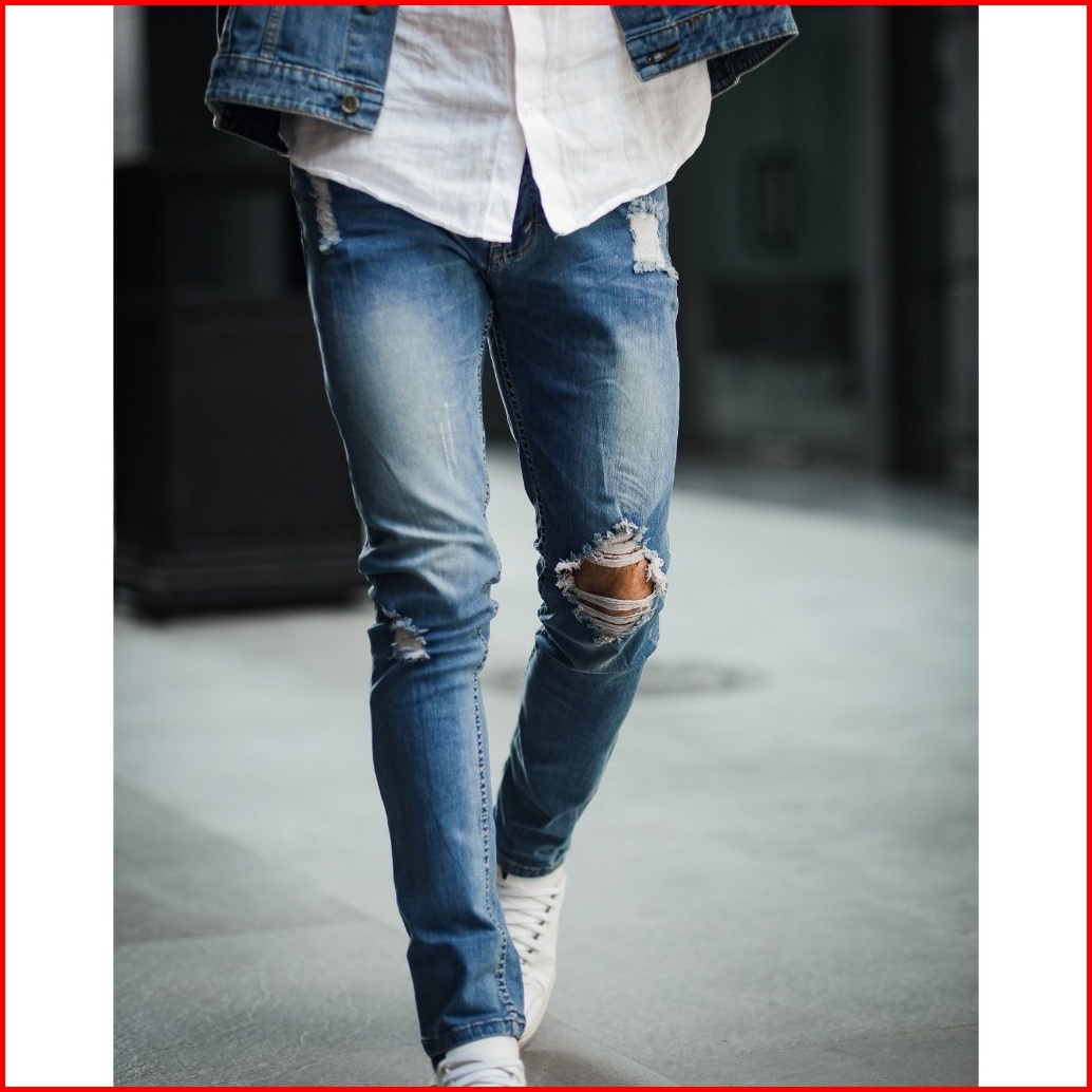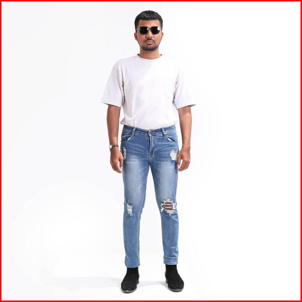 Weird Jeans - Blue Modry A08 - Celana Jeans Panjang Pria Slimfit Ripped Jeans