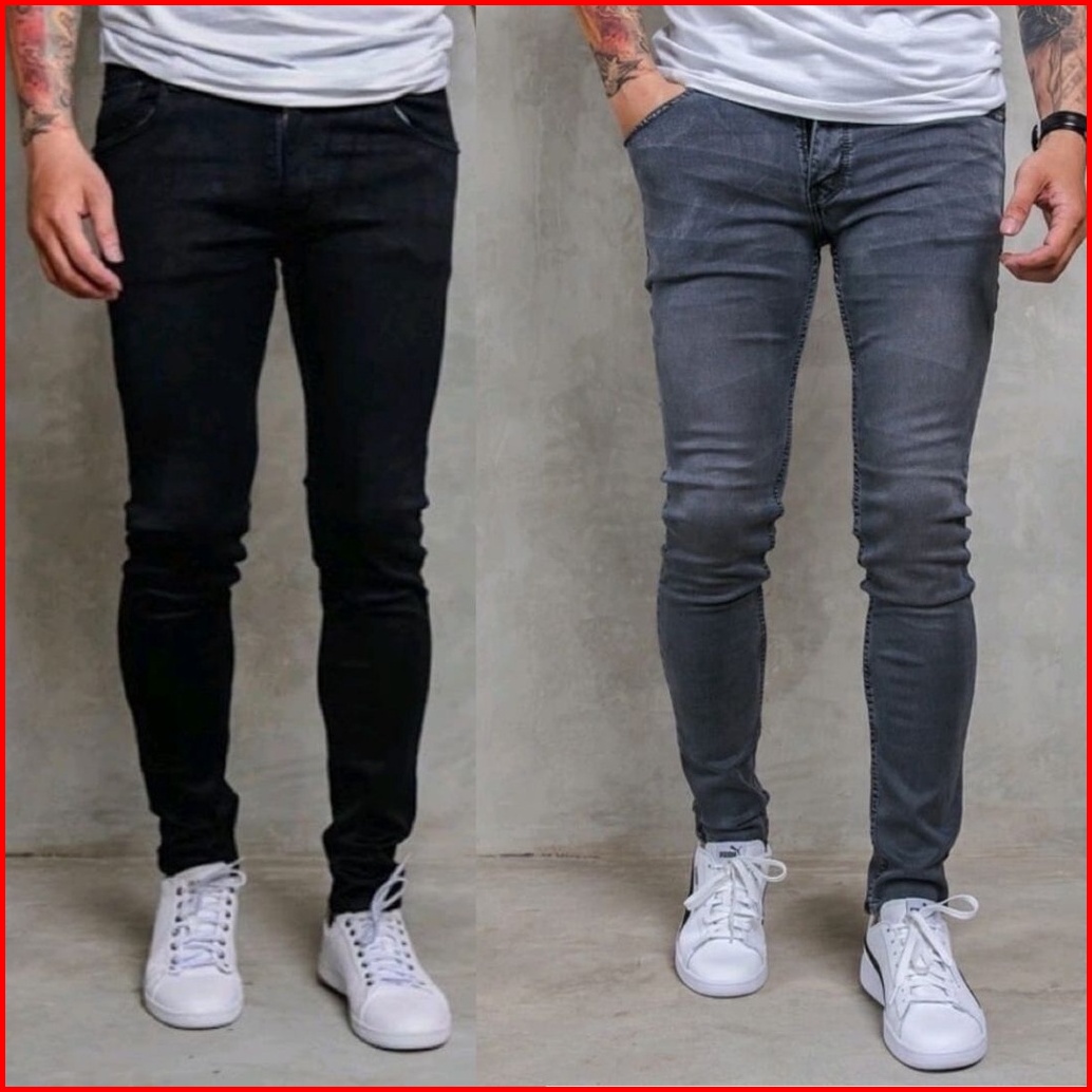 Jeans Stretch Pull Bear Celana Pria Celana Panjang Super Skinny Hitam Polos