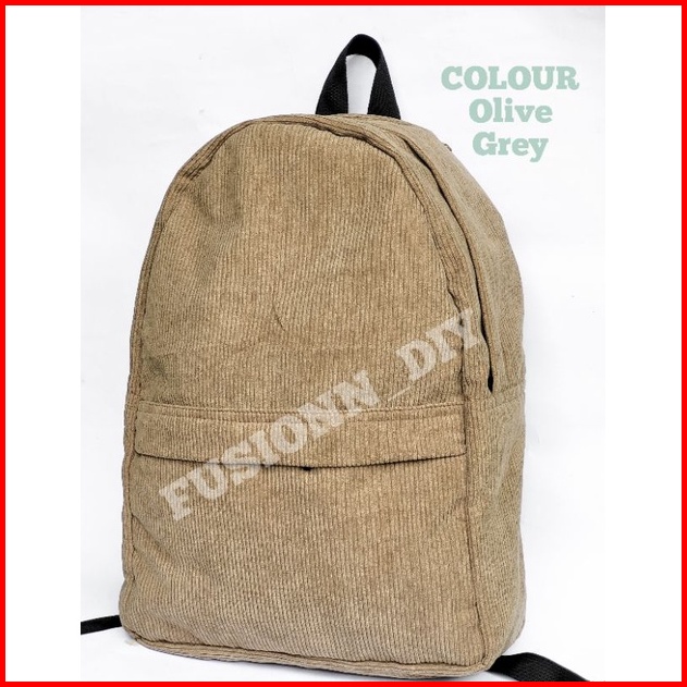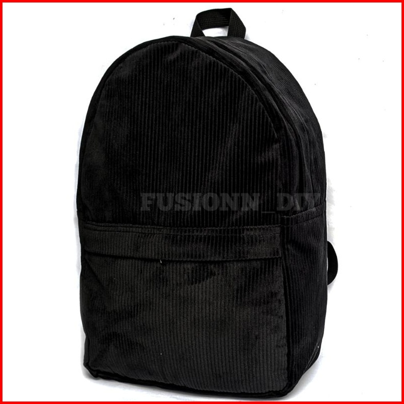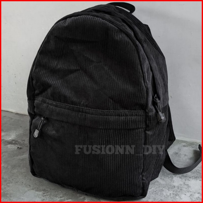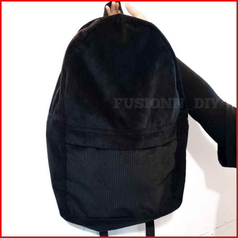Tas Ransel Bahan Kain Corduroy Warna Hitam - Tas Sekolah Kuliah School Bag Unisex - Backpack Laptop Pria Wanita