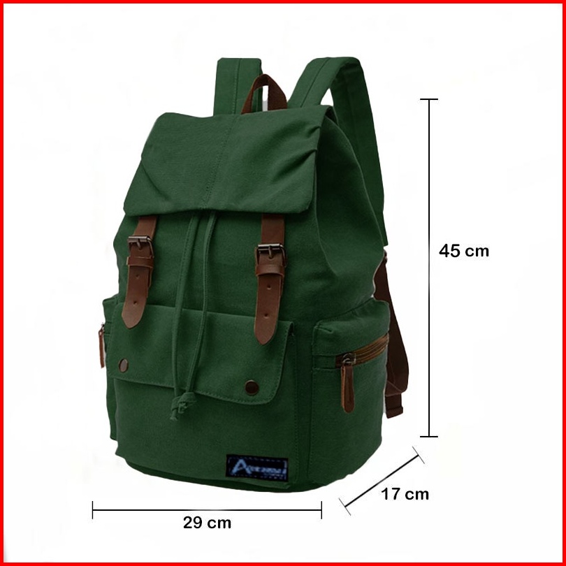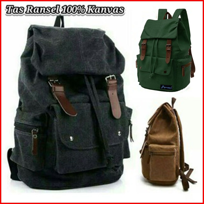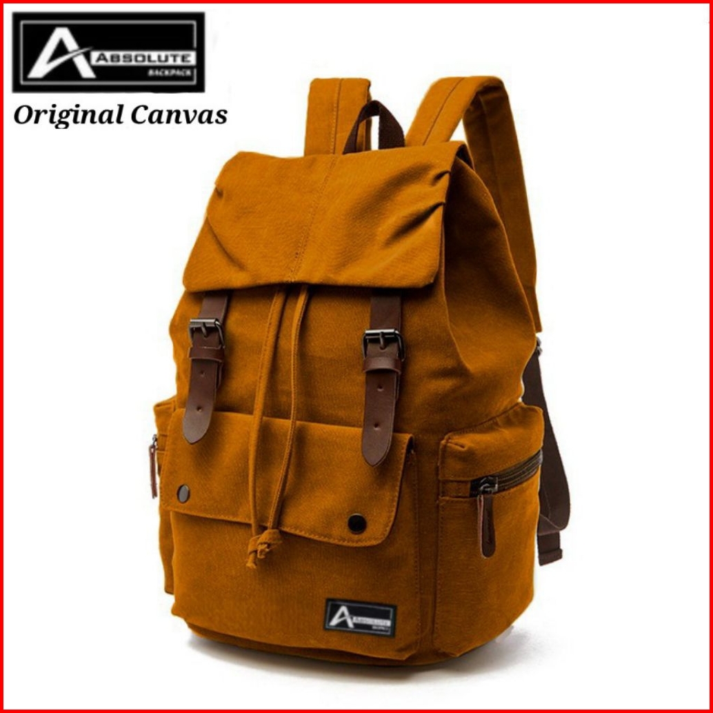 Absolute Tas Ransel Hitam Laptop Unisex Bahan Kanvas Pria Wanita Kerja Kuliah Sekolah Lokal Bandung