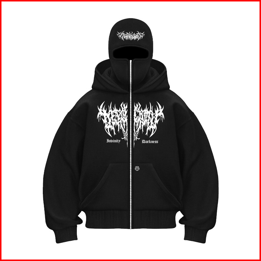 Do The Flow Hoodie Balaclava Metal Zipper Jaket Boxy Hitam