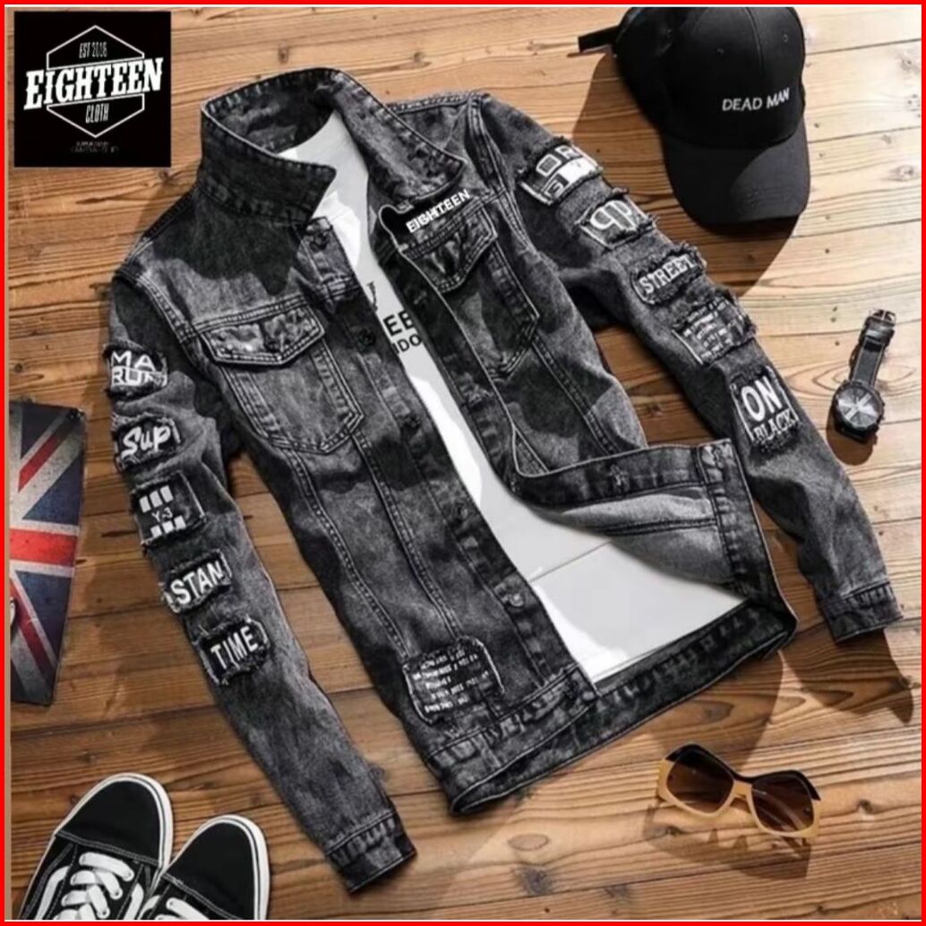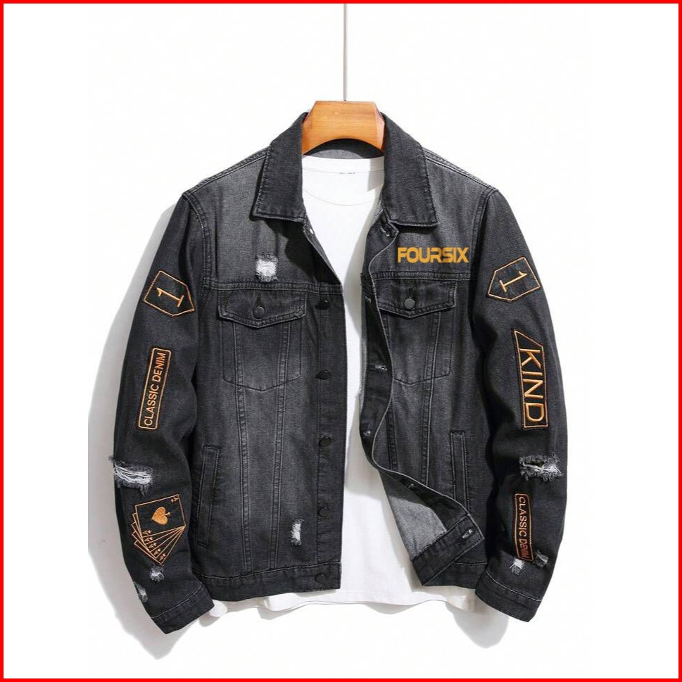 Mm Store Jaket Jeans Cowo Casual Pakaian Pria Bordiran Putih Egthen Jaket Denim Ukuran M L Xl Xxl