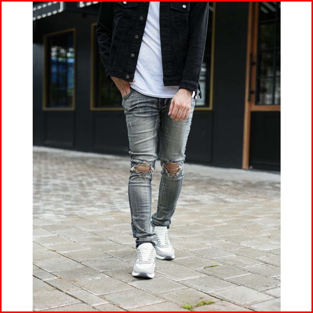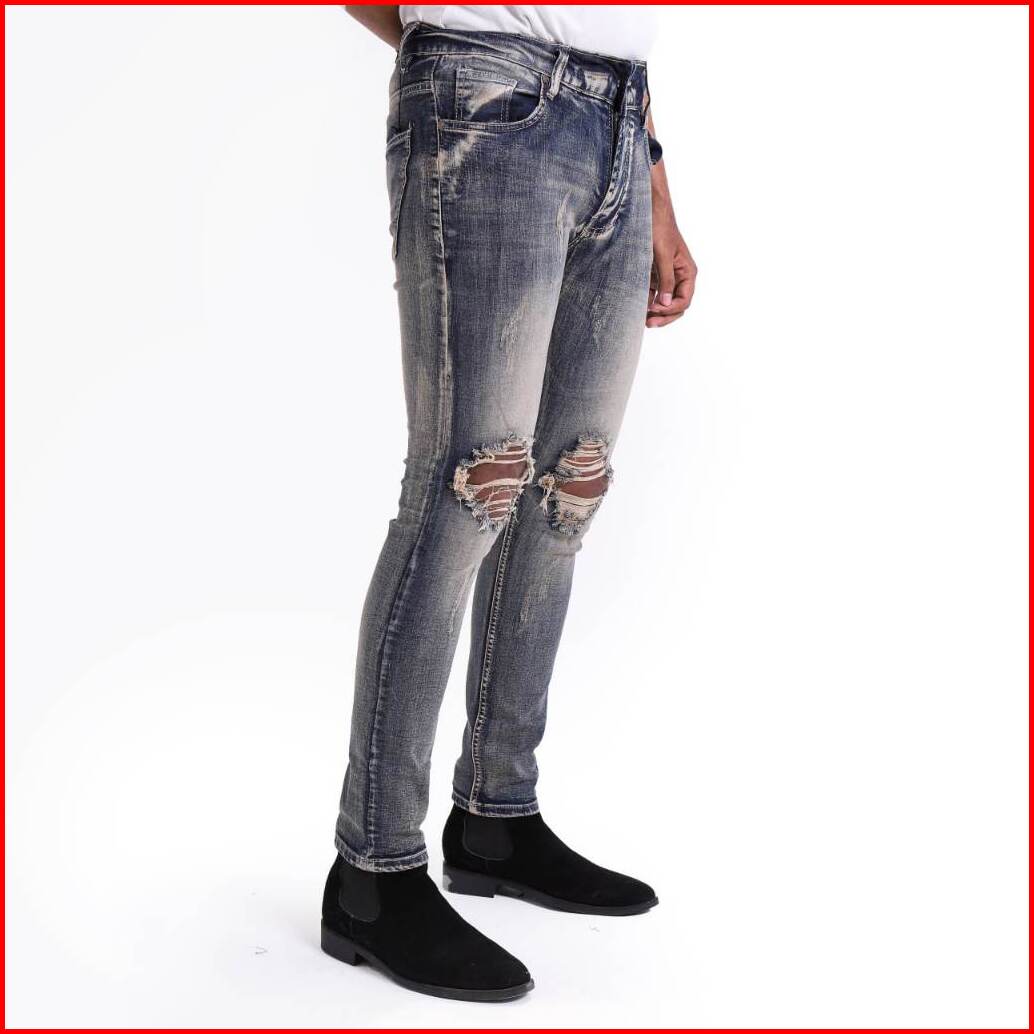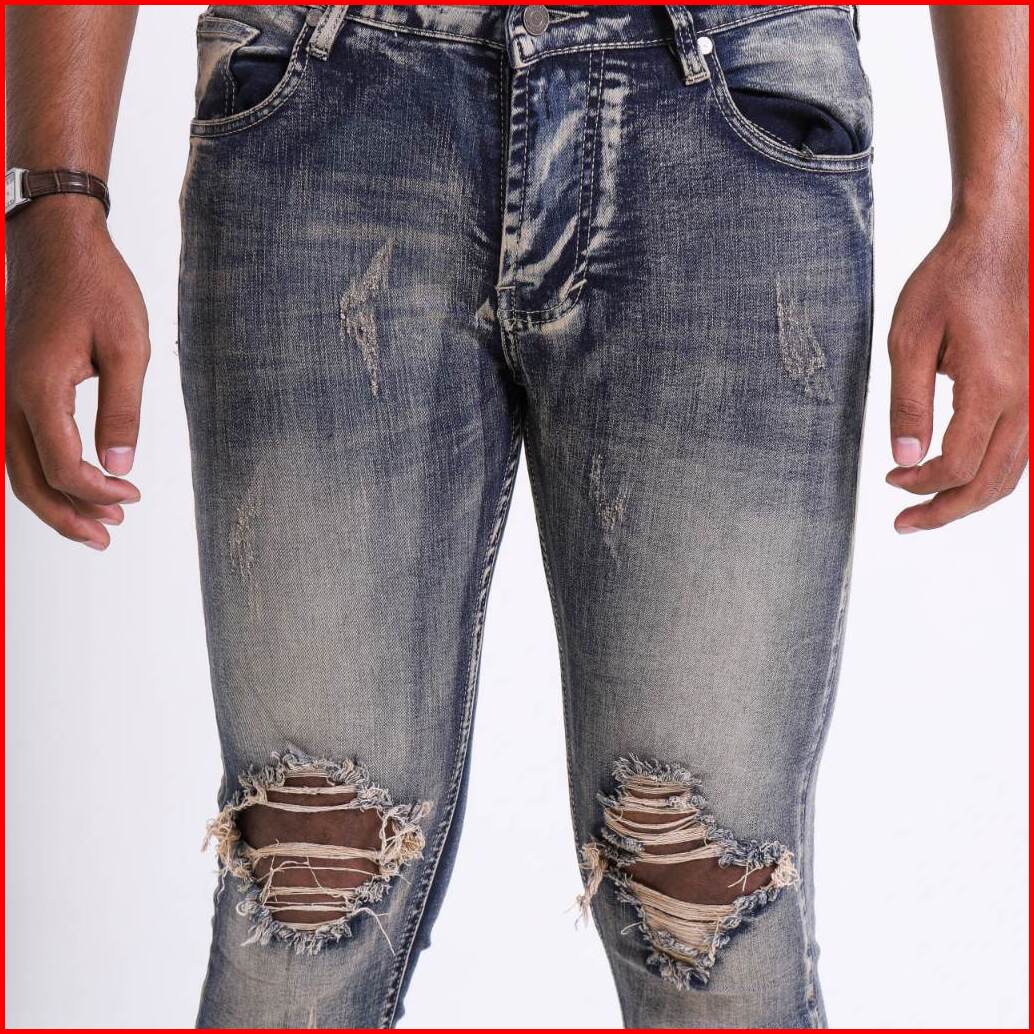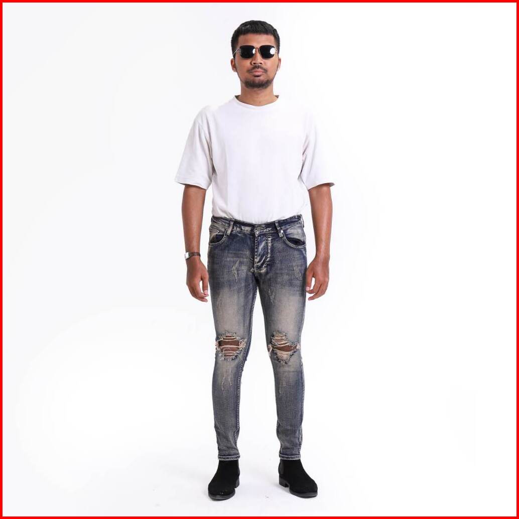 Weird Jeans - Dirty Blue M06 - Celana Jeans Pria Sobek Slimfit Ripped Jeans Stretch