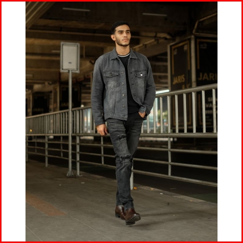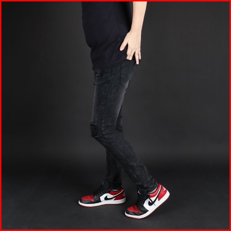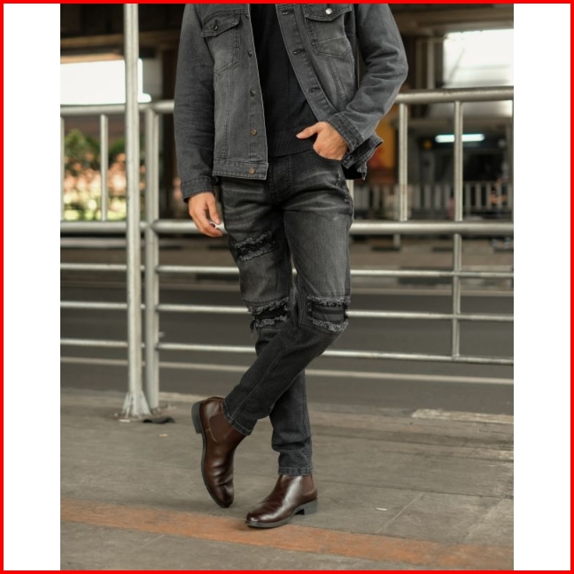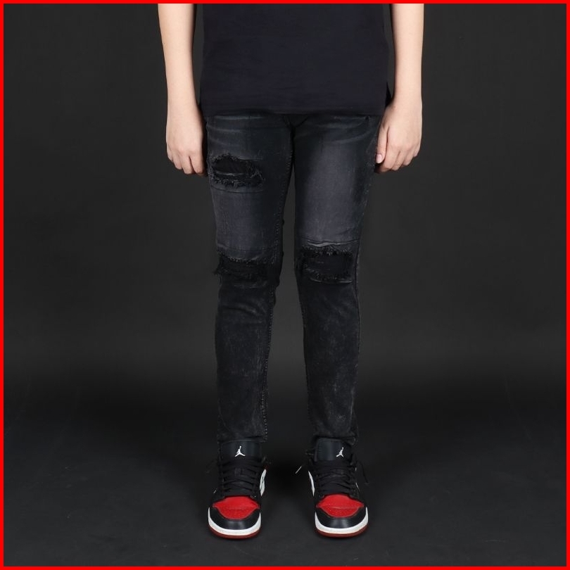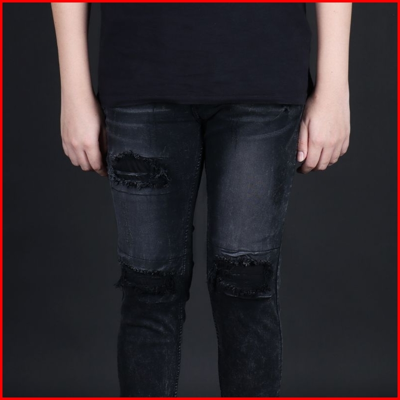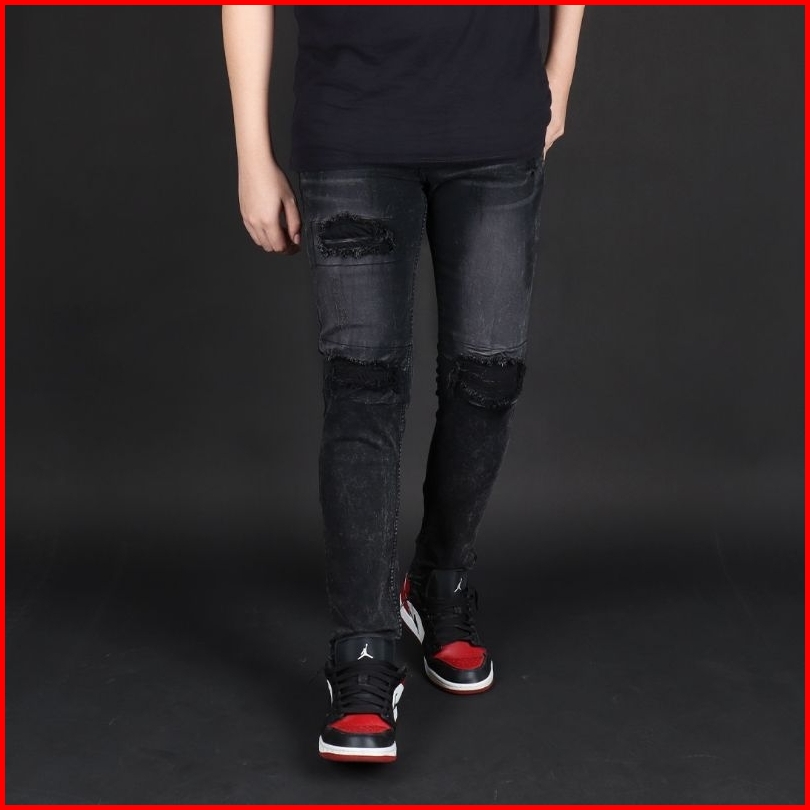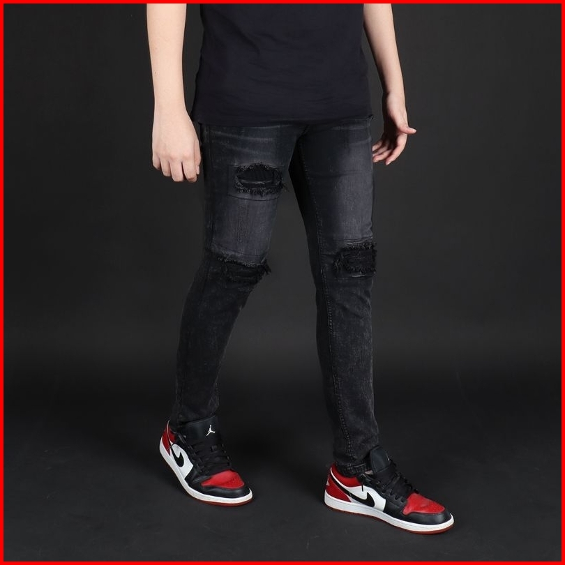 North Denim Celana Jeans Denim Panjang Pria Strech Ripped Patch Cotton - Horn Black