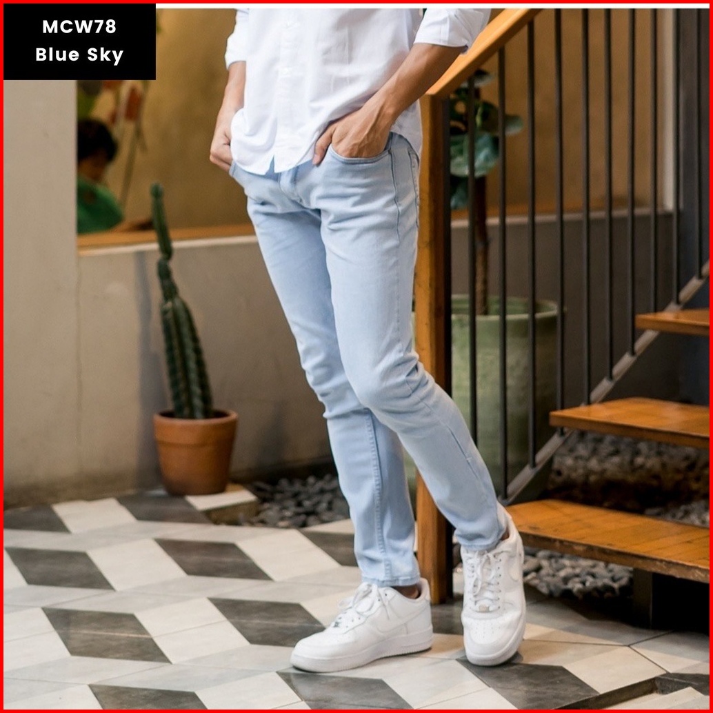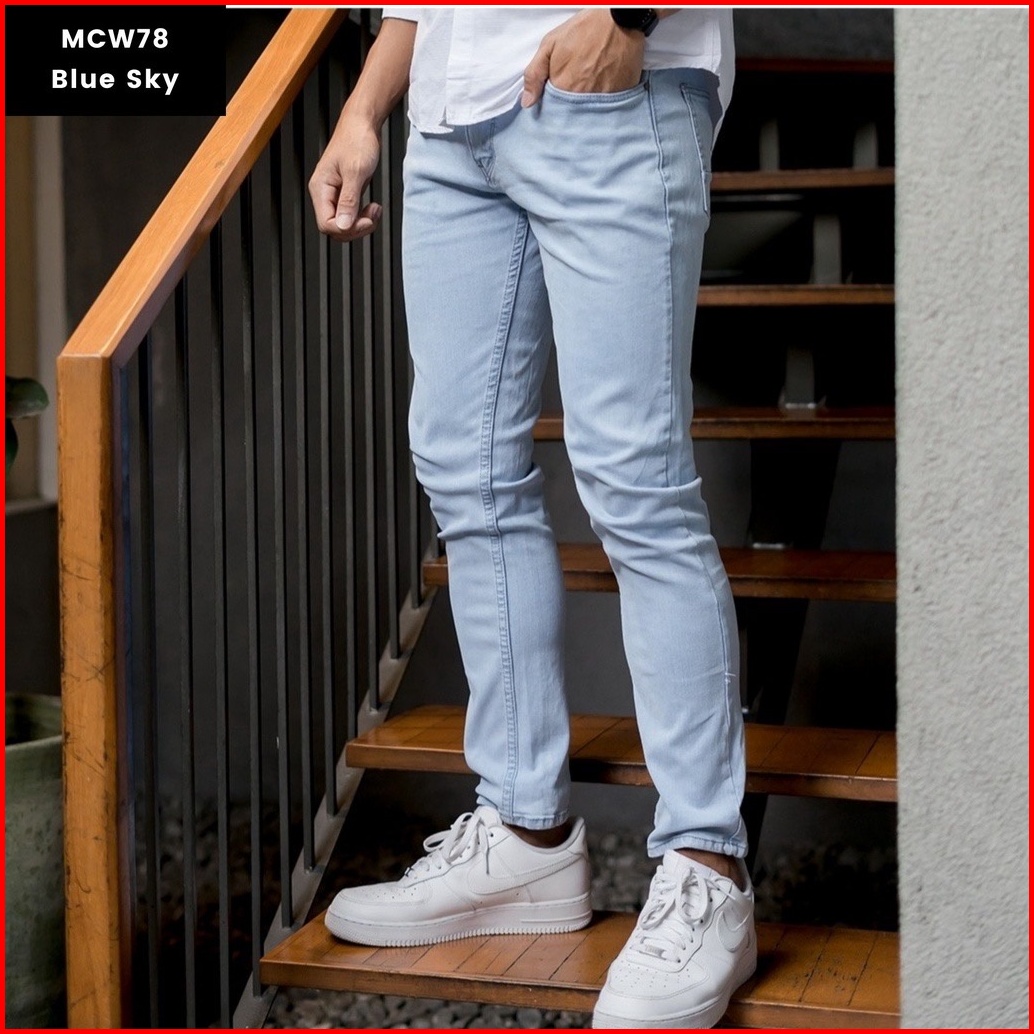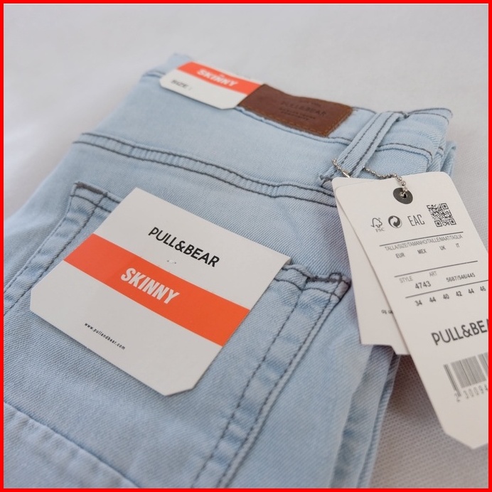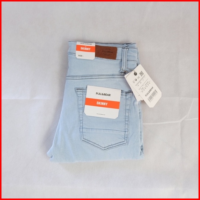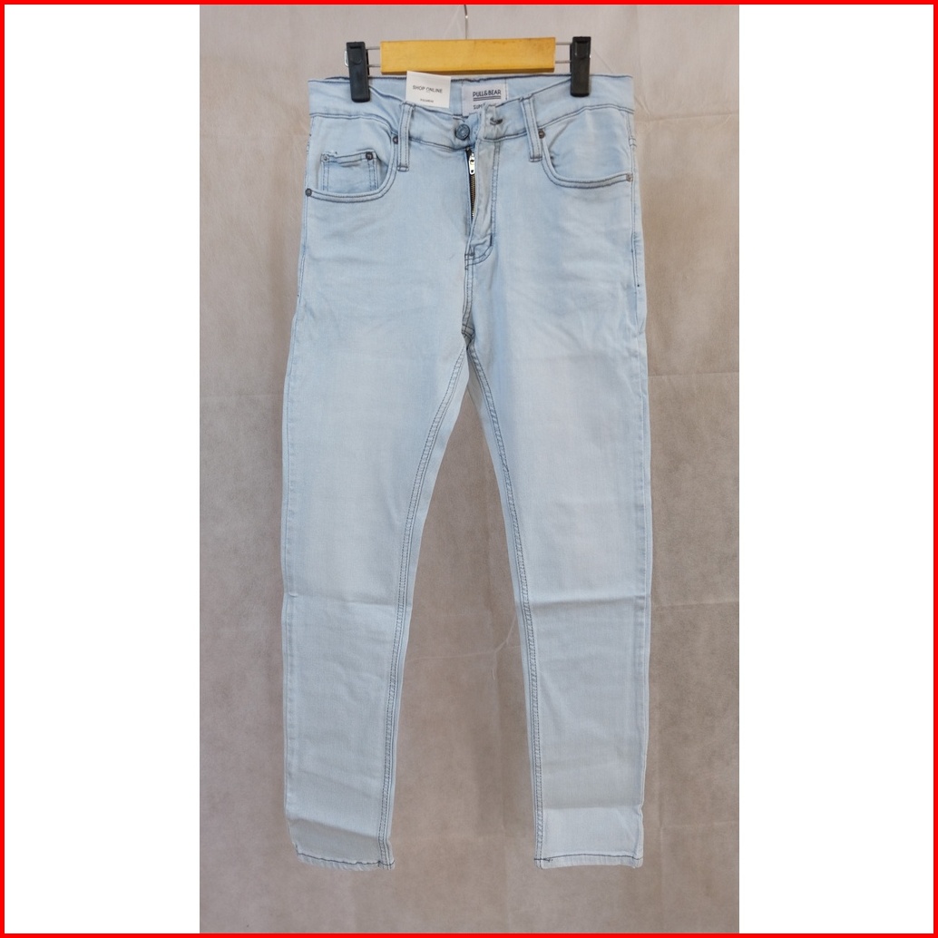 Celana Jeans Skinny Pull Bear Pria Blue Light Stretch Biru Muda Terang