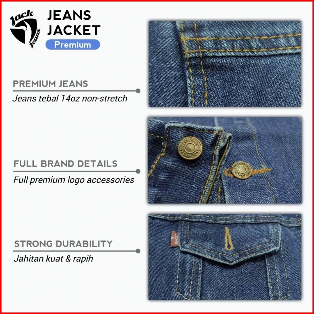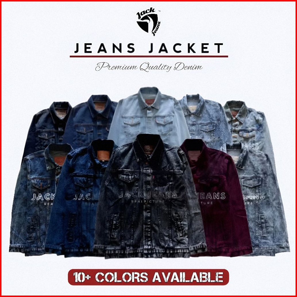 Premium Quality Jaket Jeans Denim Tebal Pria Wanita Cewek Cowok Sandwash Corak Acid Snow Blue Black Biru Abu Tua Muda Hi
