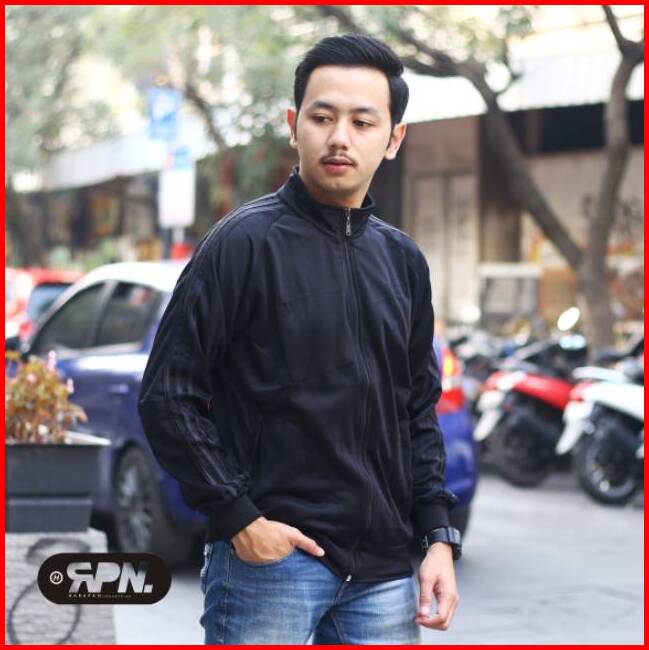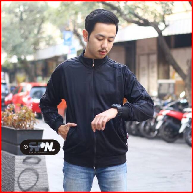 Jaket Modis Fashion Hitam Garis Hitam Best Seller Bahan Tidak Panas Saku Ada Resleting Unisex