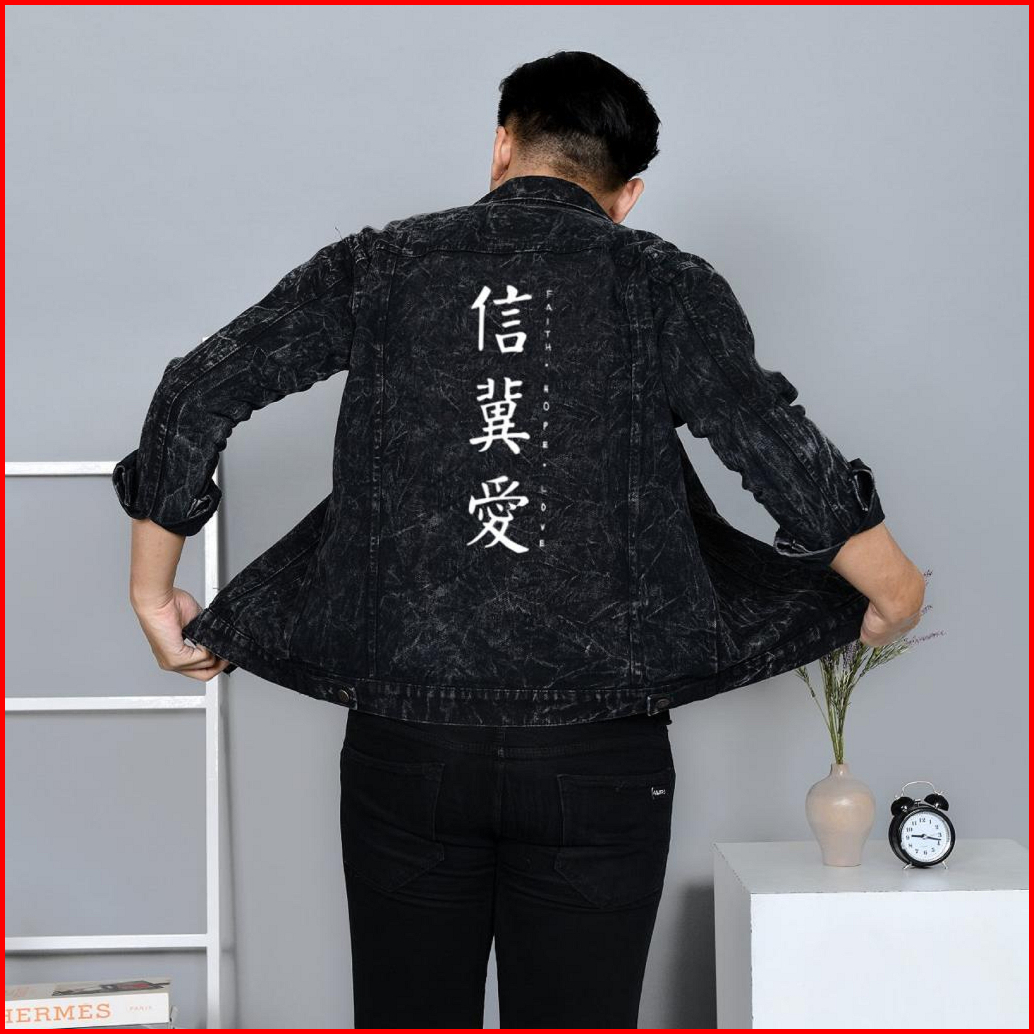 Jaket Jeans Pria - Sandwash Hitam Fhl V2 Sablon Premium