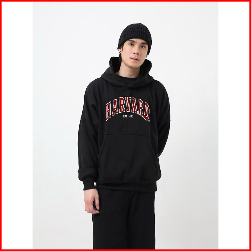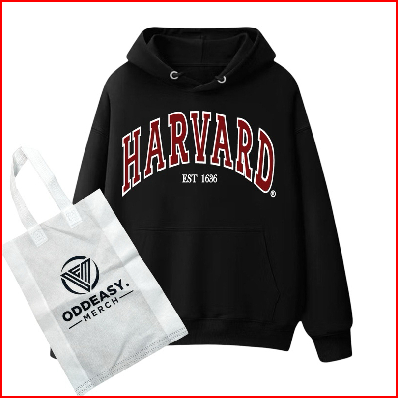 Hoodie Jaket Harvard 1636 Free Bag Misty Hitam Unisex Reguler University Universitas