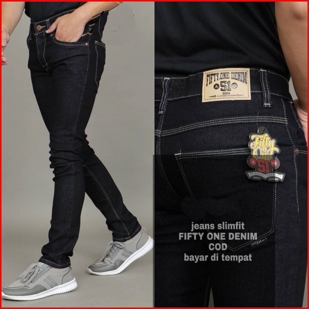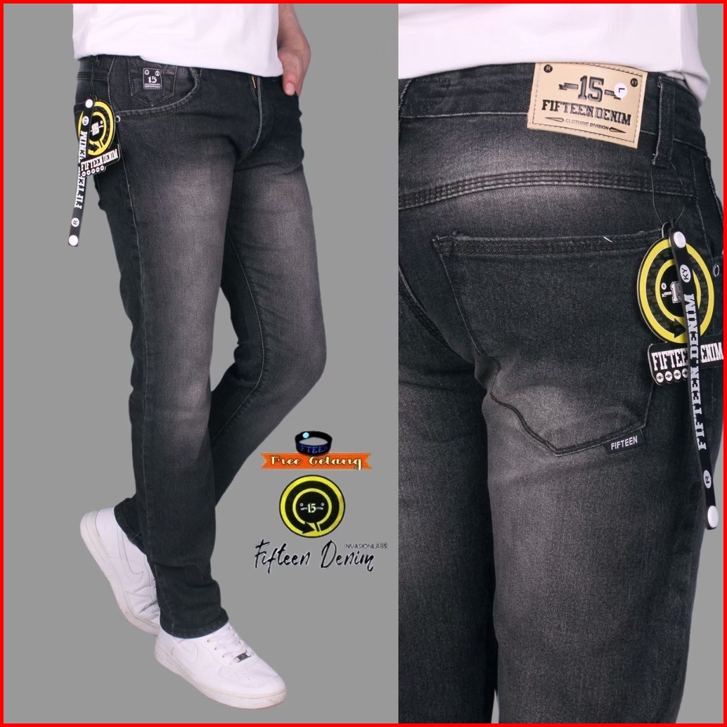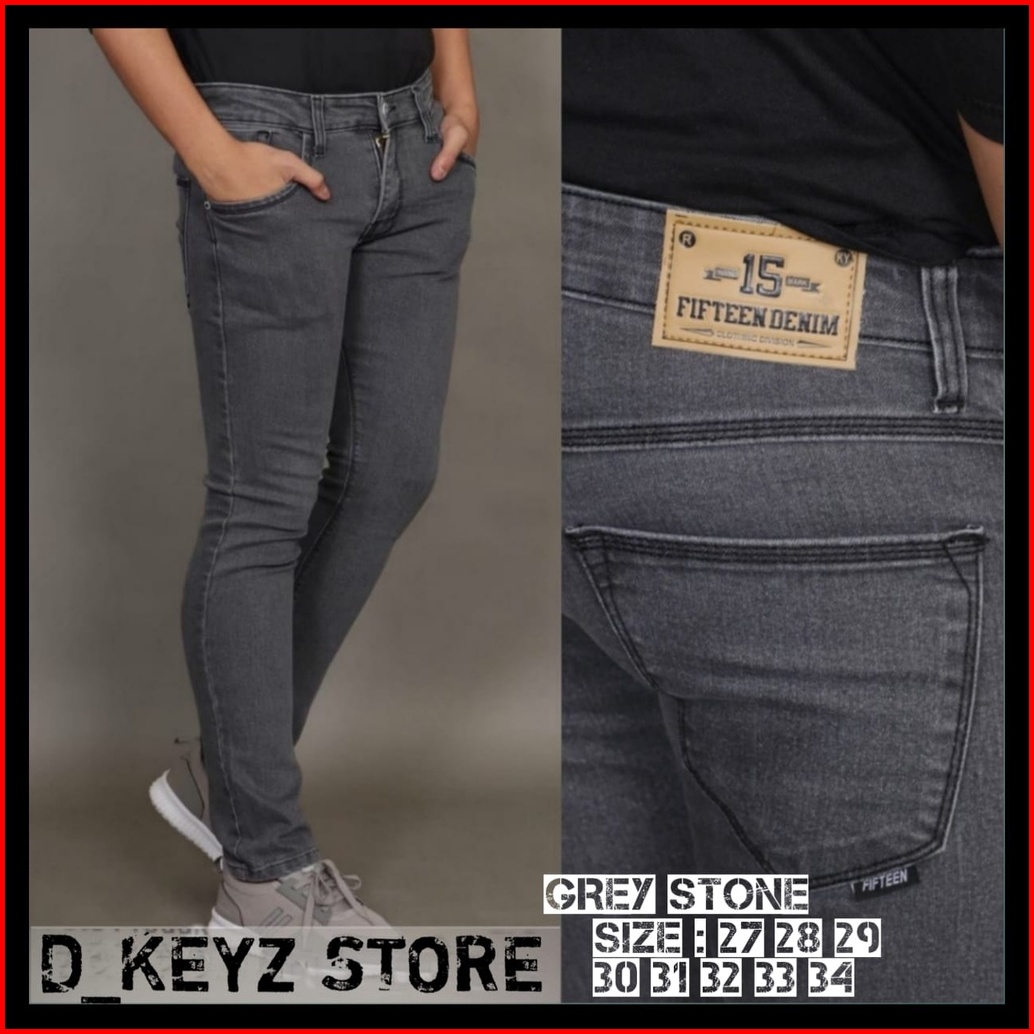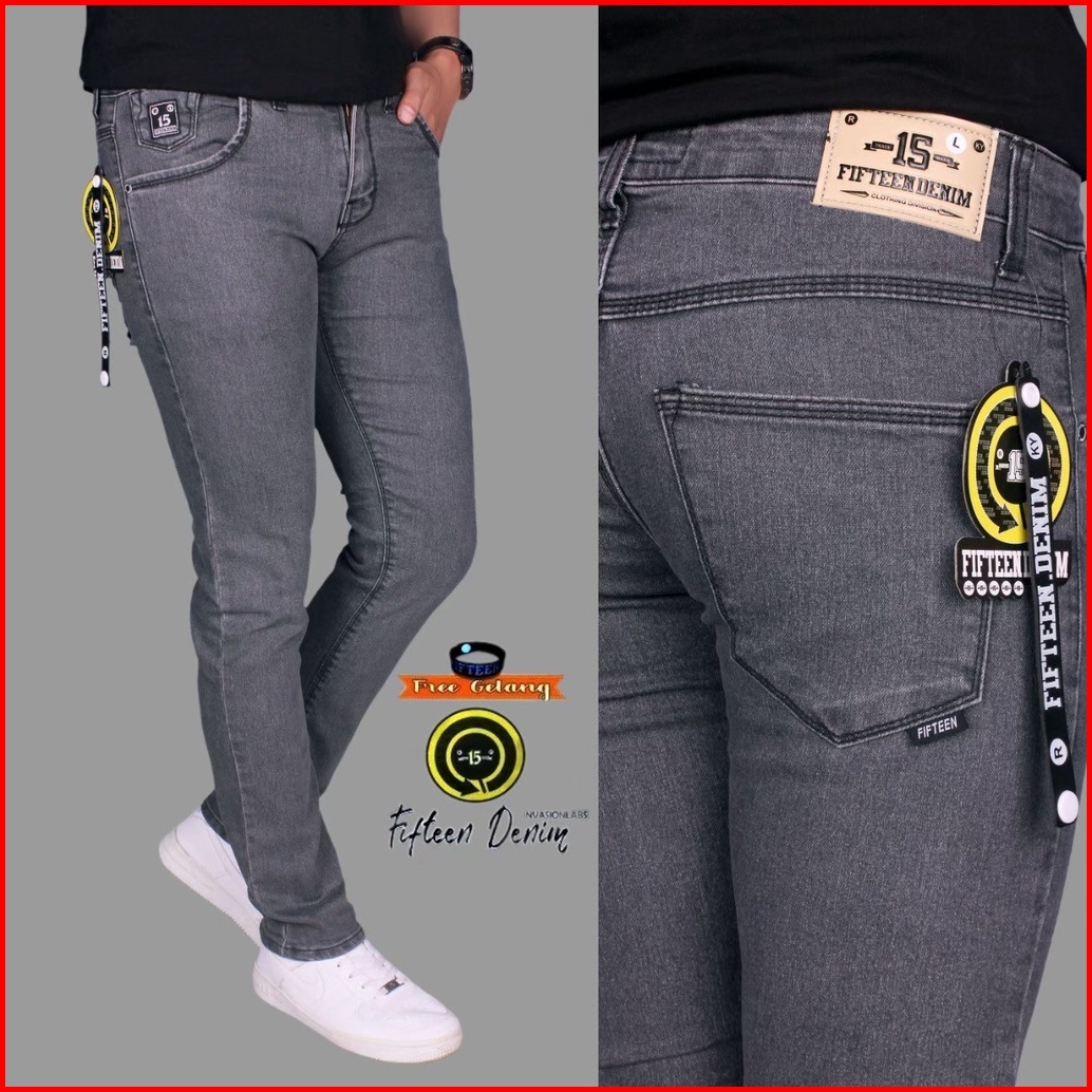 Fifteen Denim - Celana Jeans Pria Slim Fit Streetch Original Celana Cowok Jeans Cowok Abu Grey Jeans