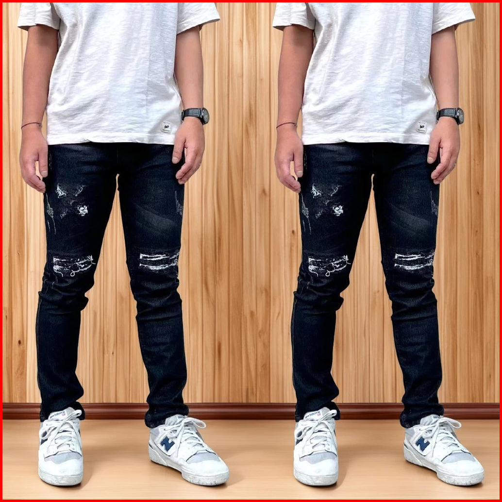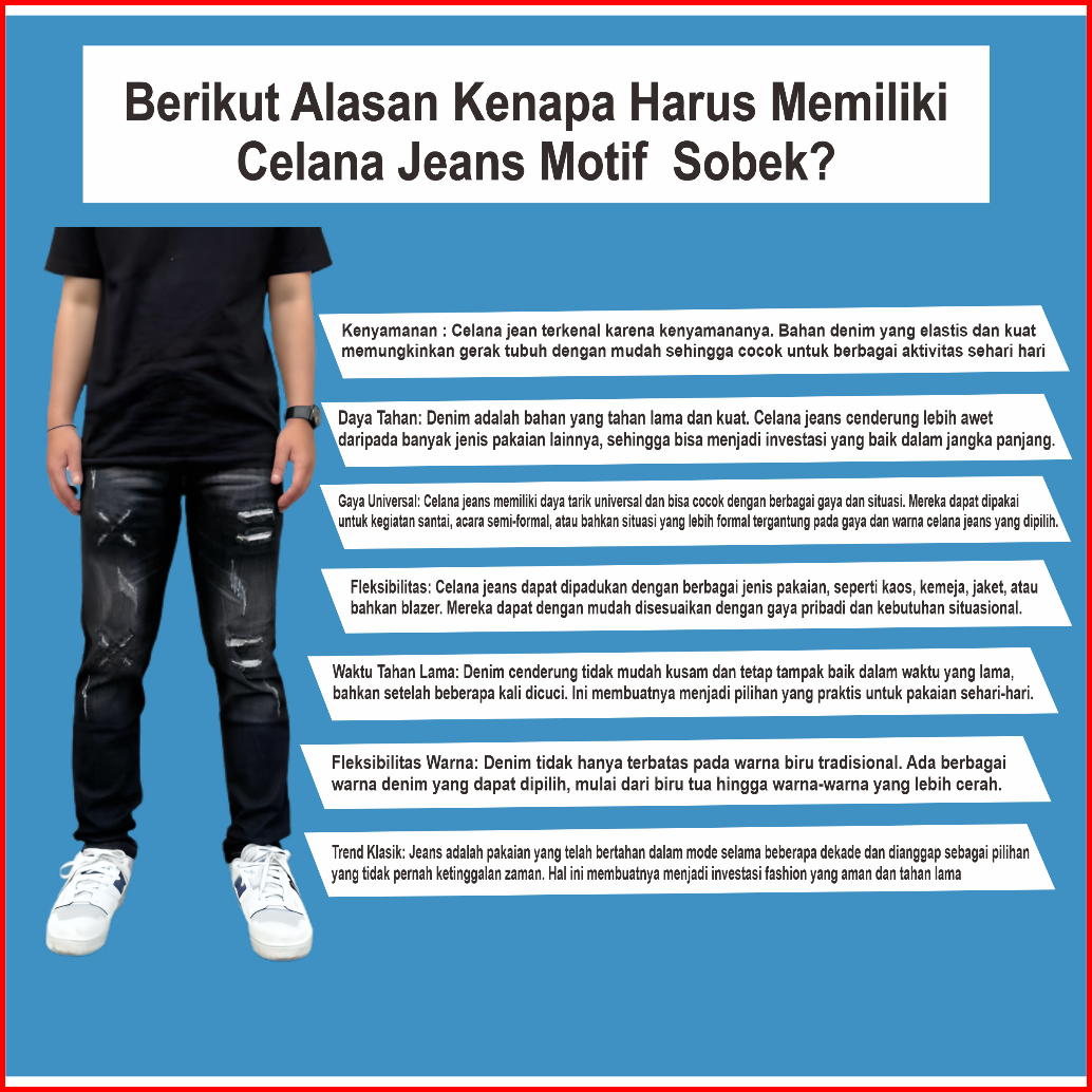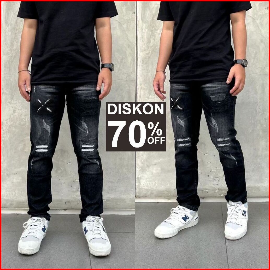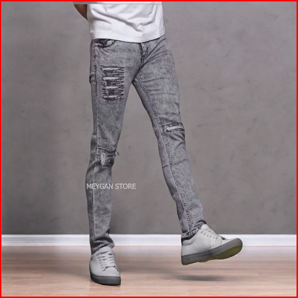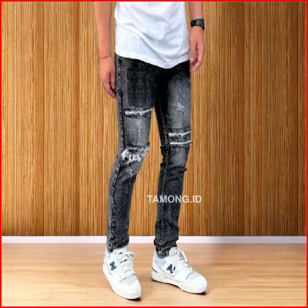 Celana Panjang Pria Jeans Celana Jeans Sobek Pria Ripped Jeans Celana Slim Fit Pria Motif Sobek
