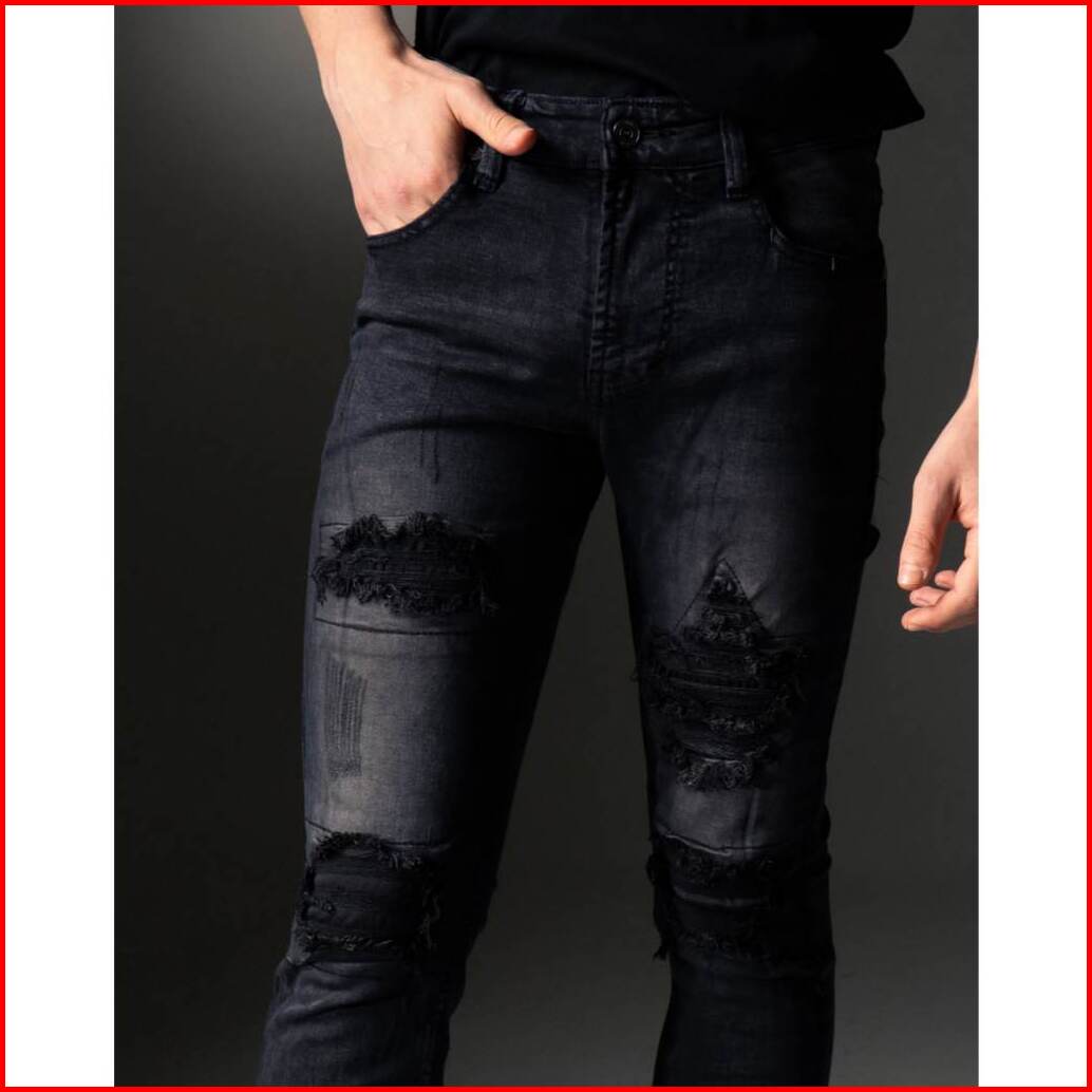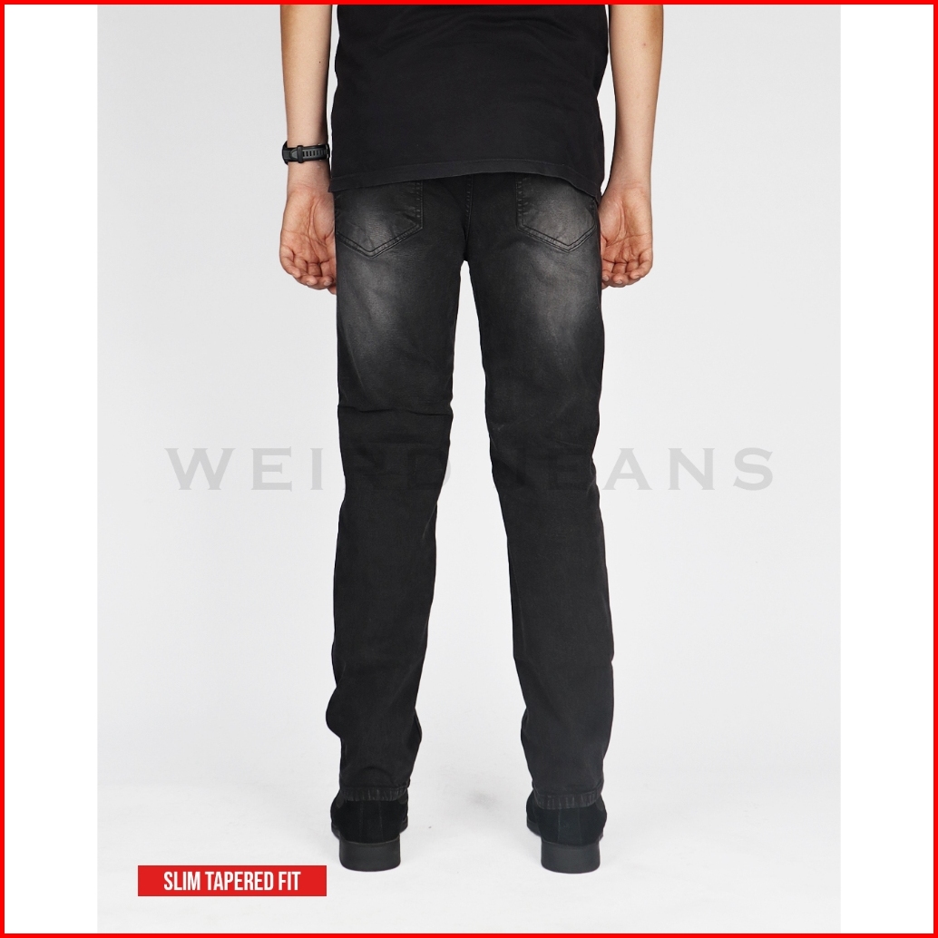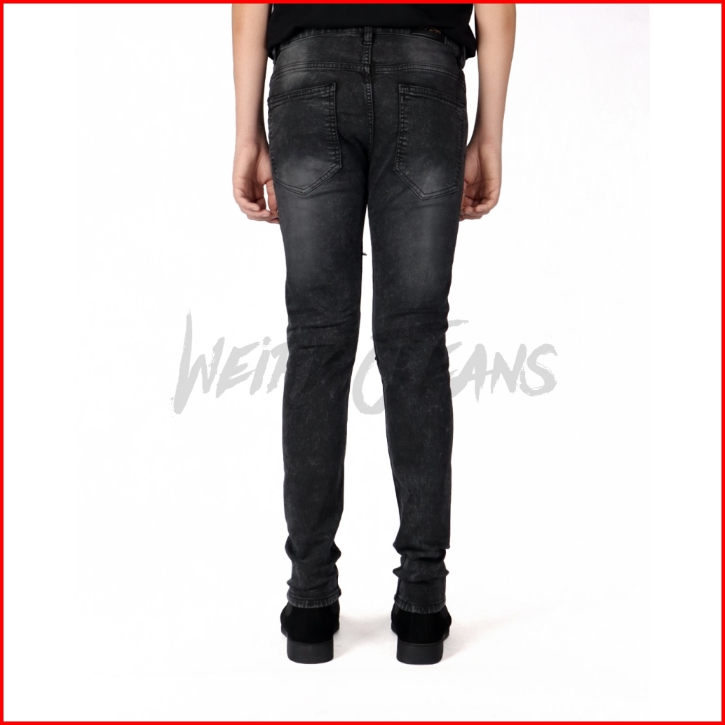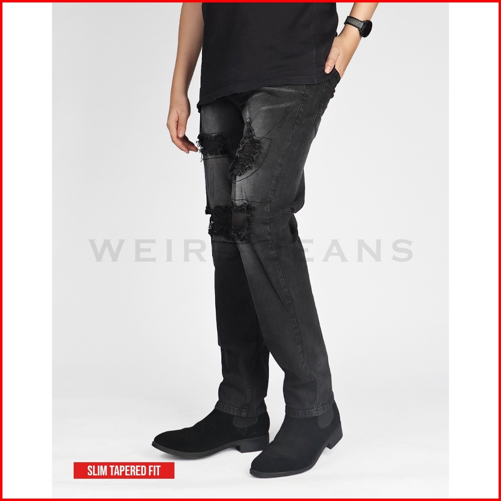 Weird Jeans - Austin Black - Celana Jeans Panjang Pria Slimfit Ripped Sobek Tambal