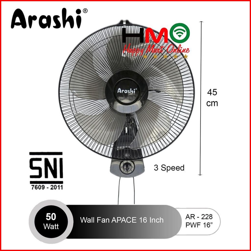 Kipas Angin Dinding 16 Inch 5 Baling Arashi Apace Ar-228 Pwf 16 Wall Fan 16