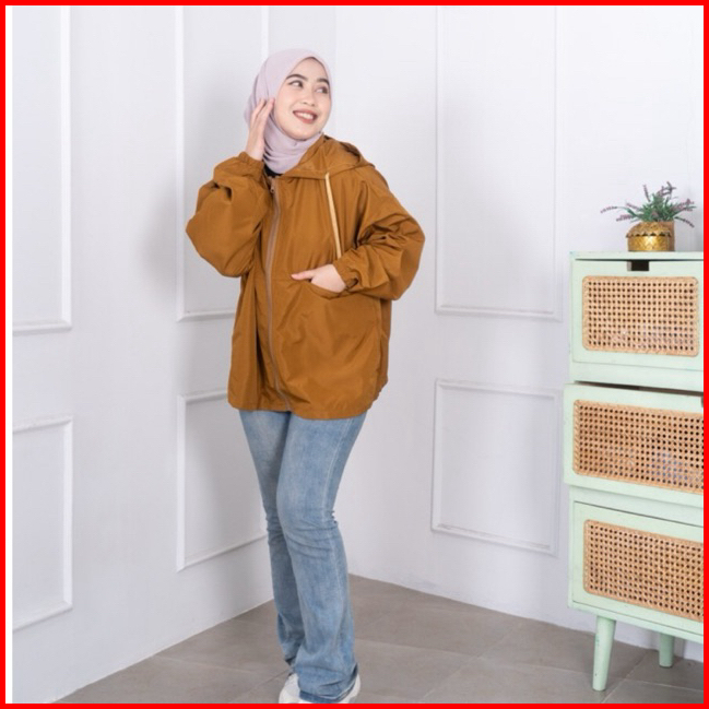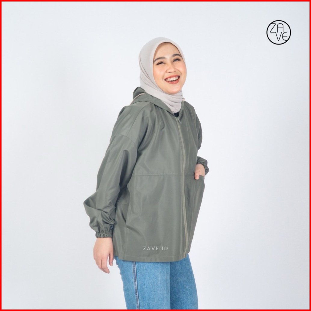 Zave - Kalee Jacket Wanita Double Pocket Windbreaker Nilon Oversized