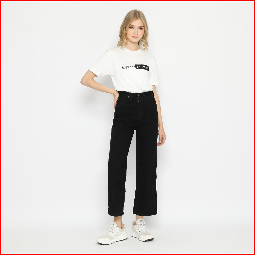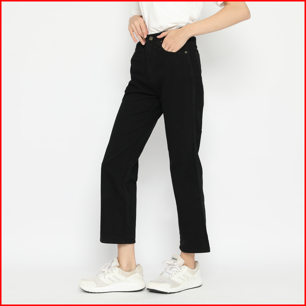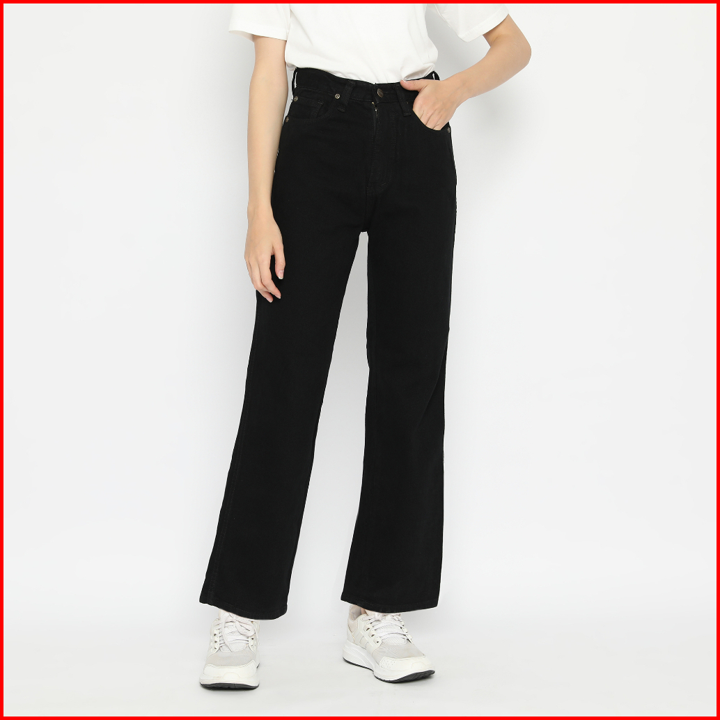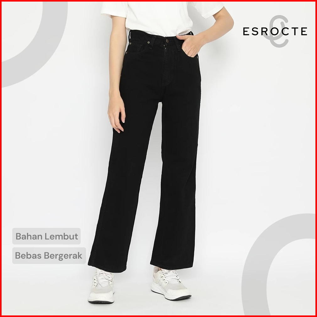 Esrocte Naia Pants Celana Loose Jeans High-waist Wanita Hitam 2638