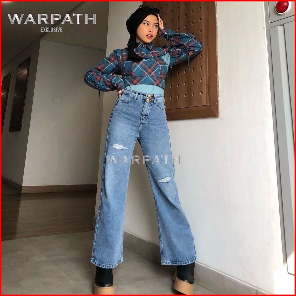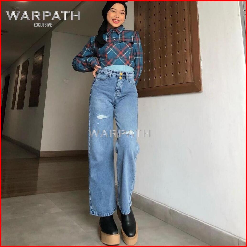 Warpath - Celana Highwaist Kulot Jeans Wanita Loose Coolgy 7371 Ripped Tidak Tembus Double Button