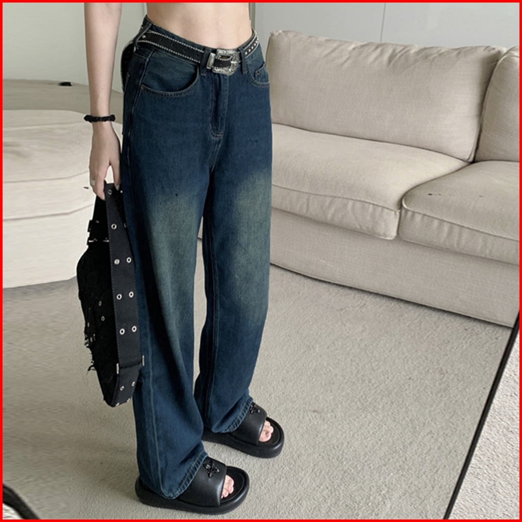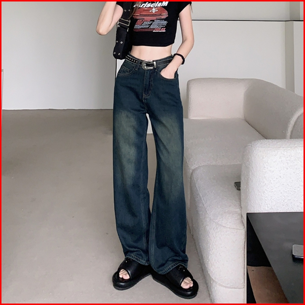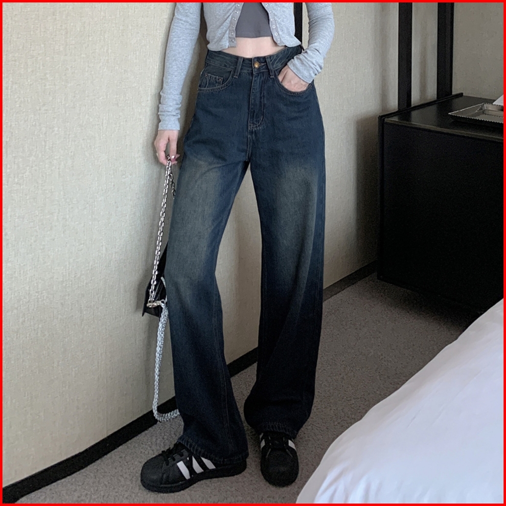 Straight Jeans Wanita Terbaru Nostalgia High Waist Celana Panjang Thin Wide Leg Denim Pants