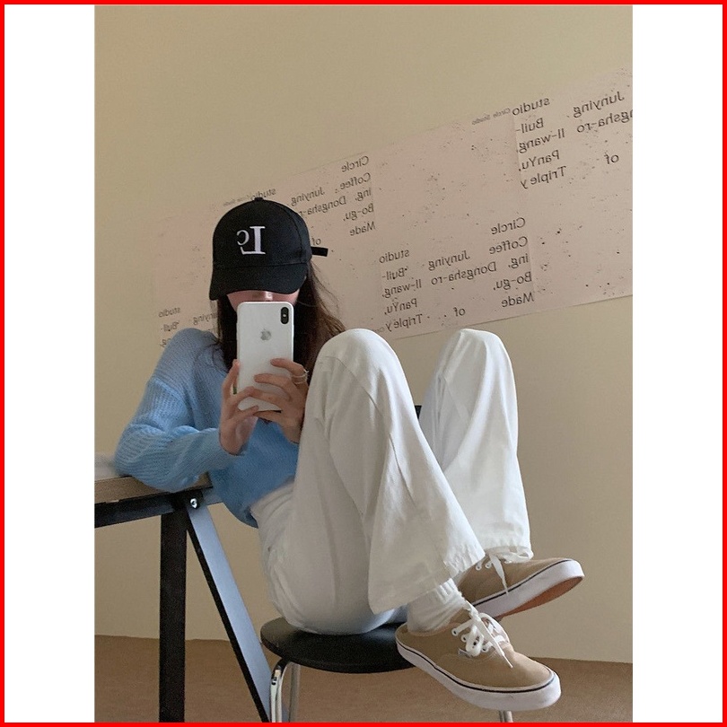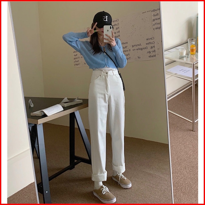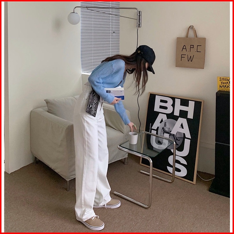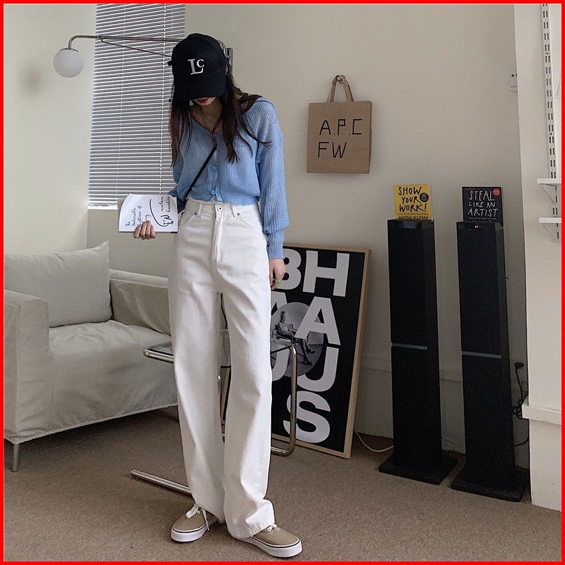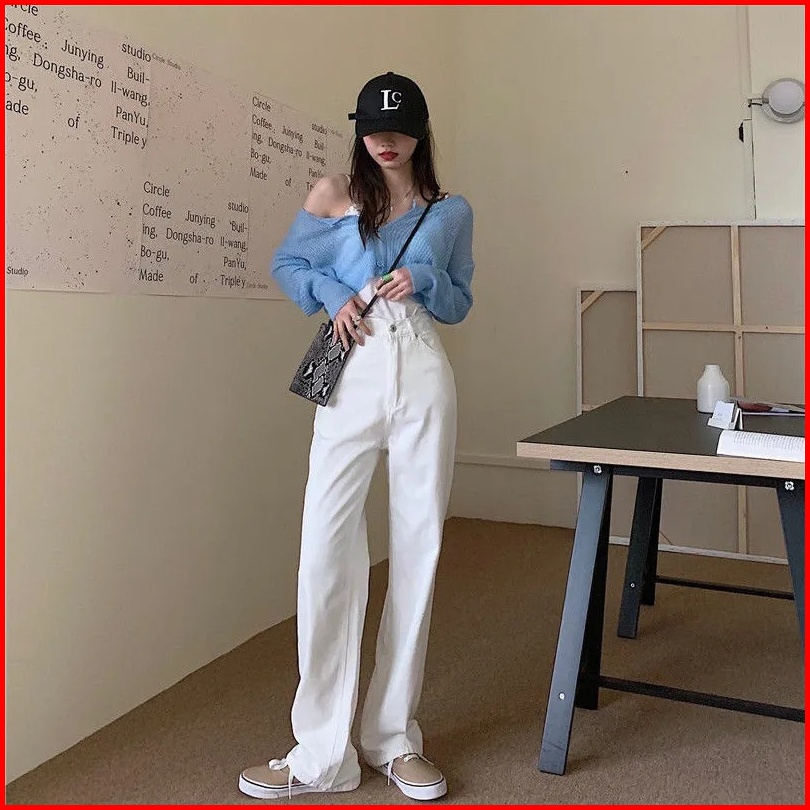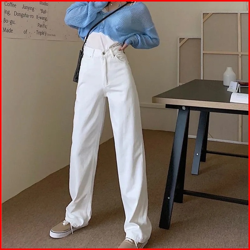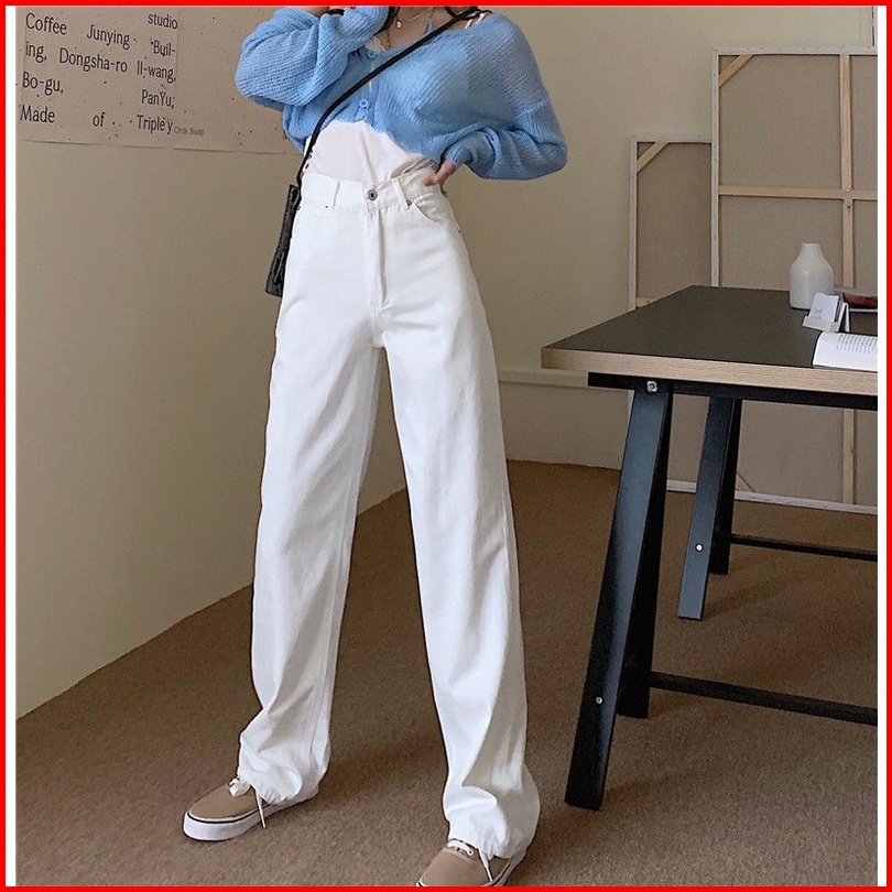 Denim Celana Wide-leg Perempuan High-waist Longgar Lurus-kaki Celana Panjang