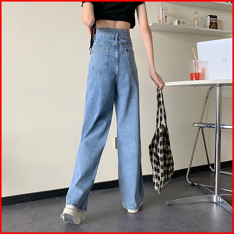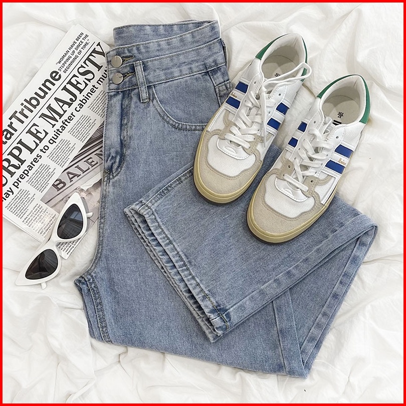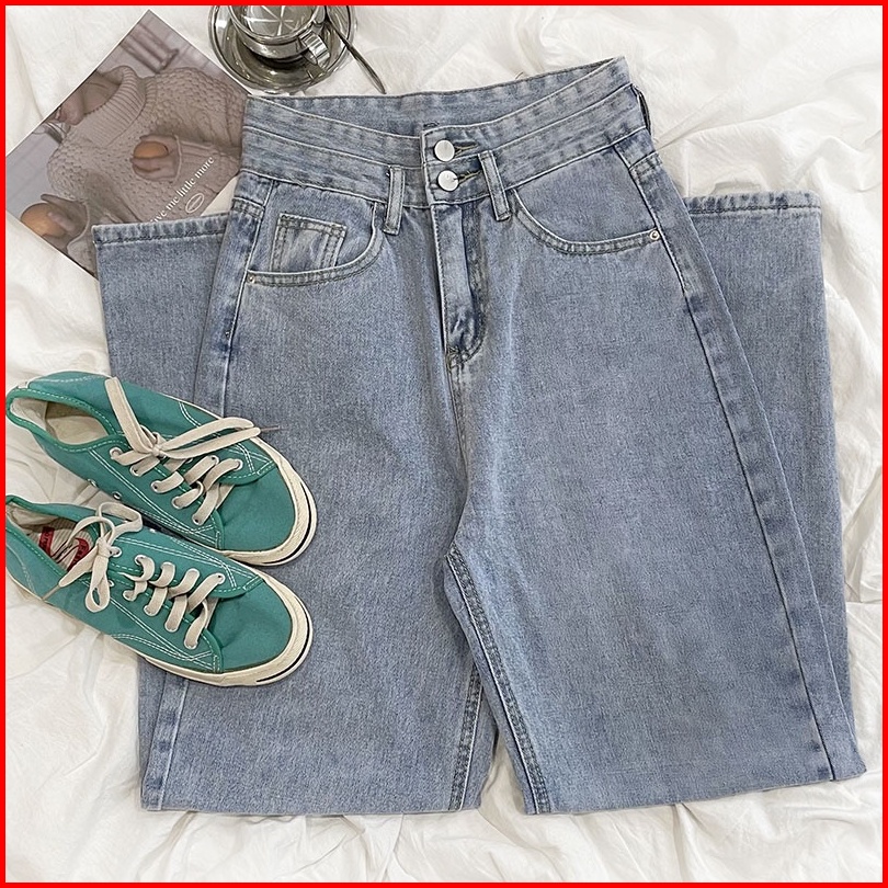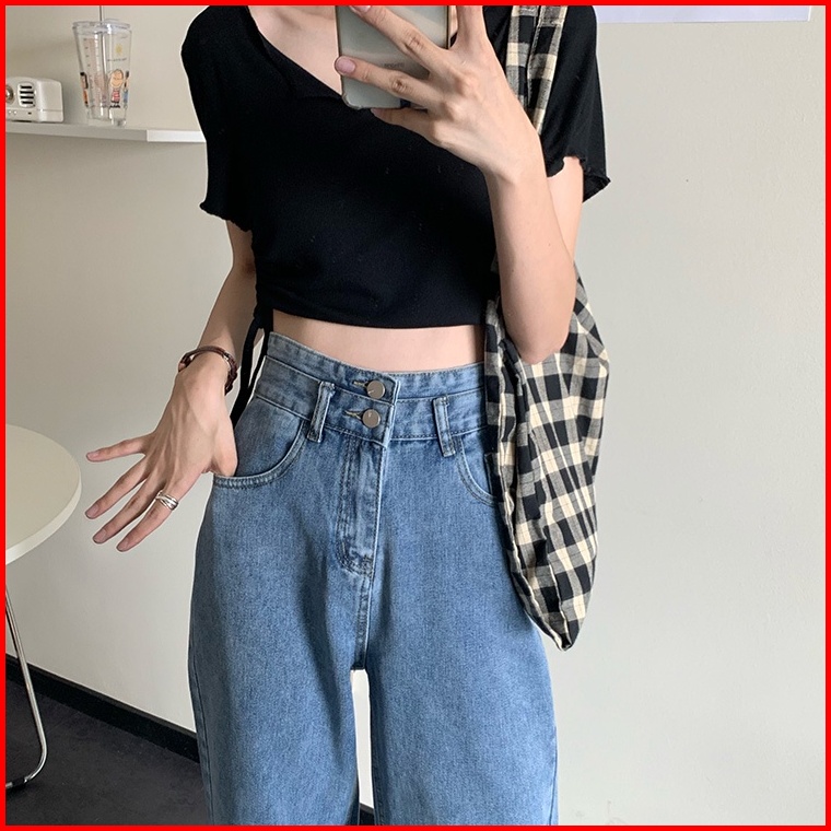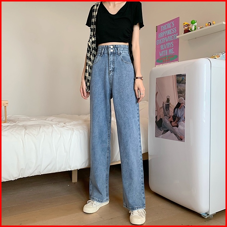 New Korean Two Kancing Highwaist Celana Jeans Panjang Wanita