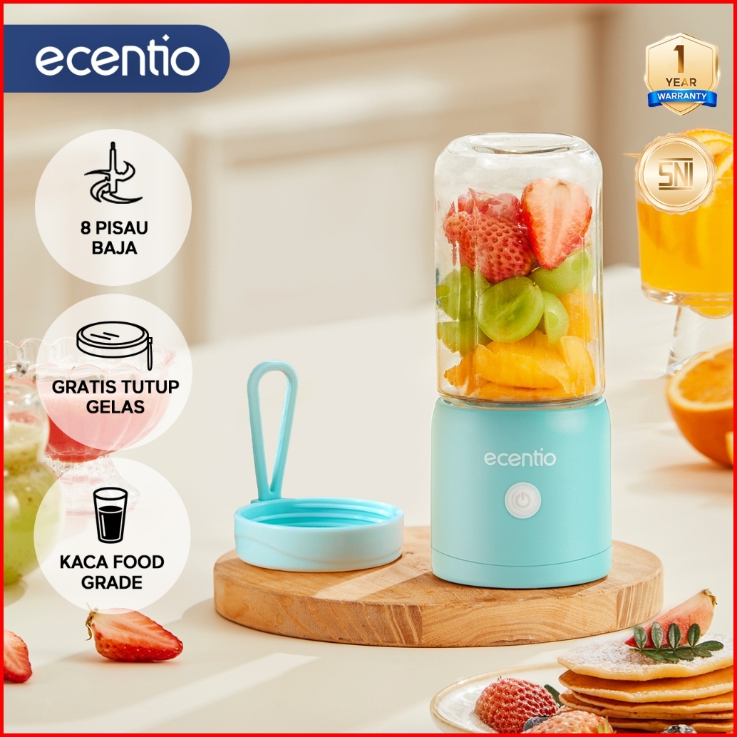 Ecentio Mini Juicer 380ml Portable Blender Mpasi Portable 8 Pisau Stainless Kaca Gelas Food Grade Tahan Pecah