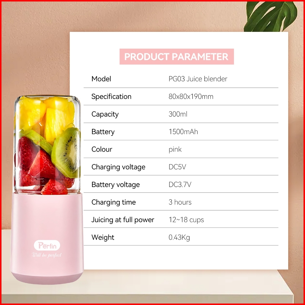 Perfin Juicer Portable Blender Portable Mini Juicer Multifungsi Usb Kaca Menebal Cangkir