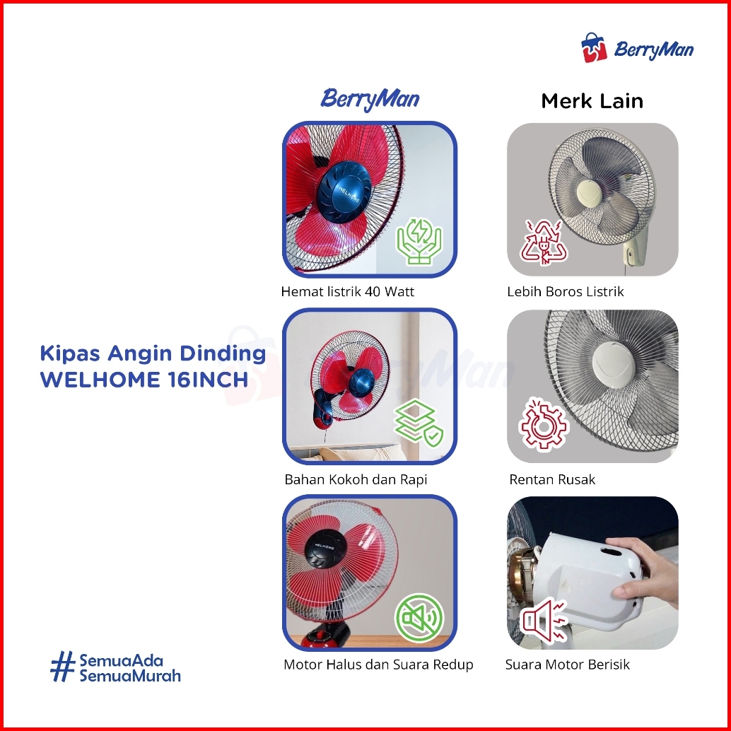 Kipas Angin Dinding Welhome Wh-1663e - Wall Fan 16inch