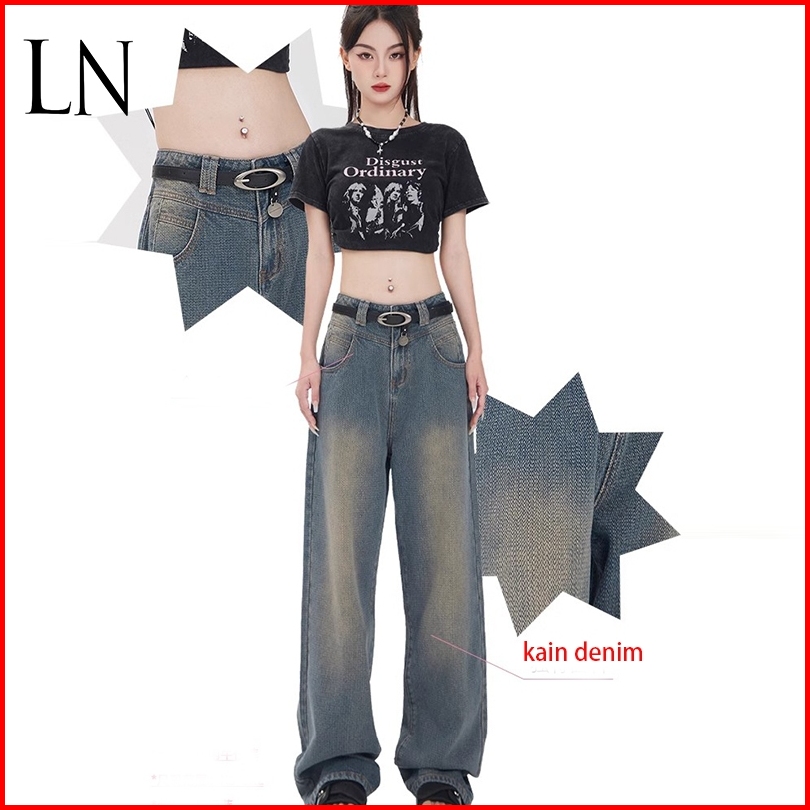 Ln.rltr-celana Jeans Wanita Jumbo Celana Jeans Wanita Korean Style Baggy Jeans Wanita Straight