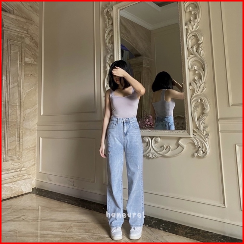 Jisoo Jeans - Celana Panjang Ripped Jeans Wanita Korean Looks Xs - Xxl