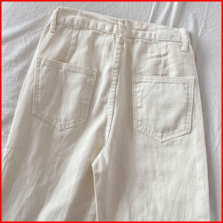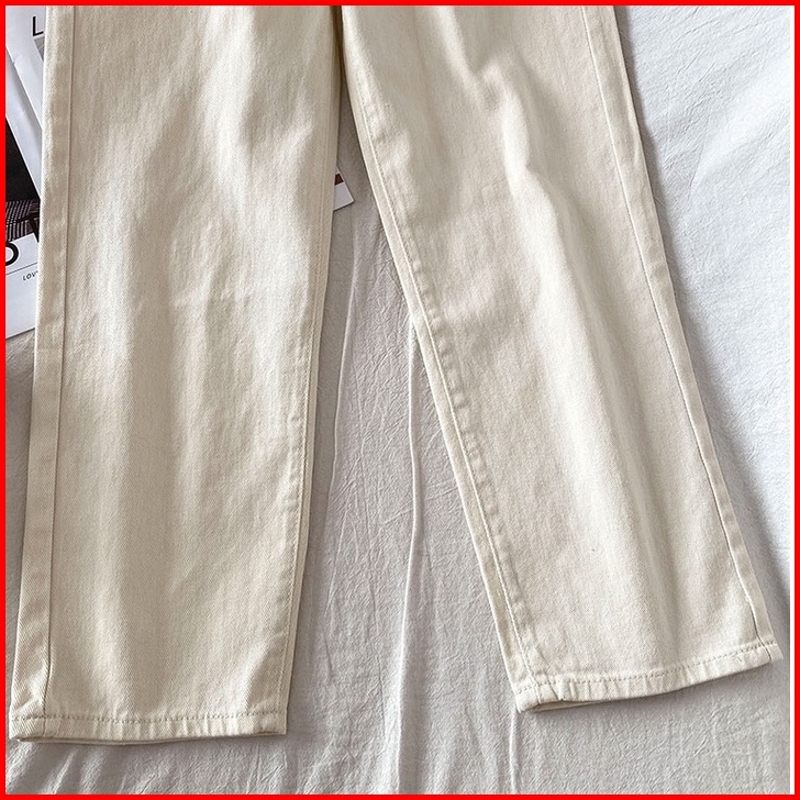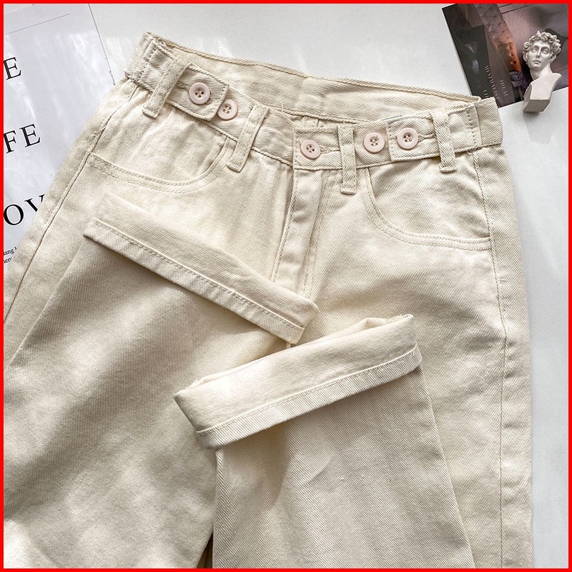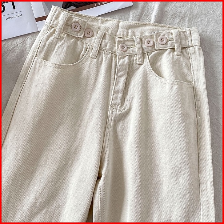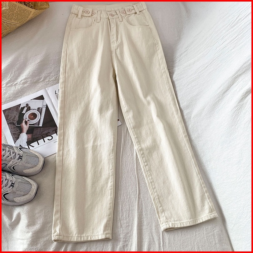 Jeans Highwaist Wanita Straight Loose Jeans Boyfriend Jeans Pinggang Bisa Penyesuaian Realpict