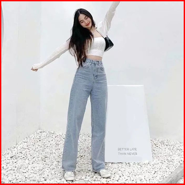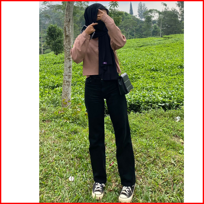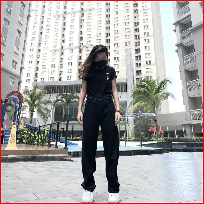 Ozy Store - Celana Kulot Higwaist Loose Jeans Korean Style