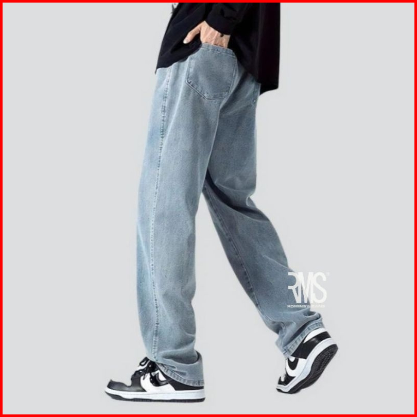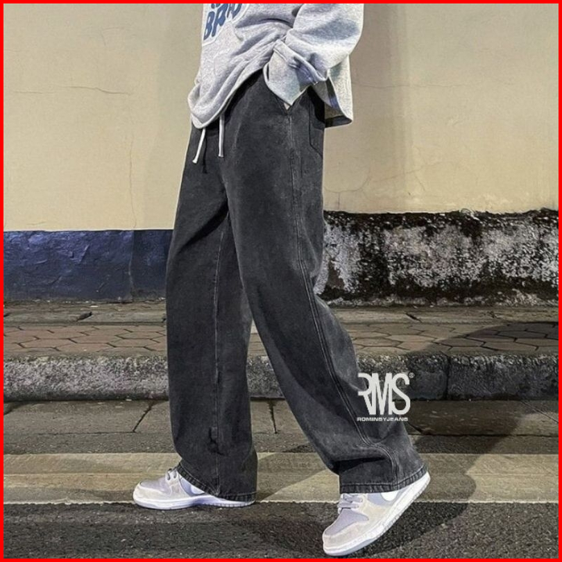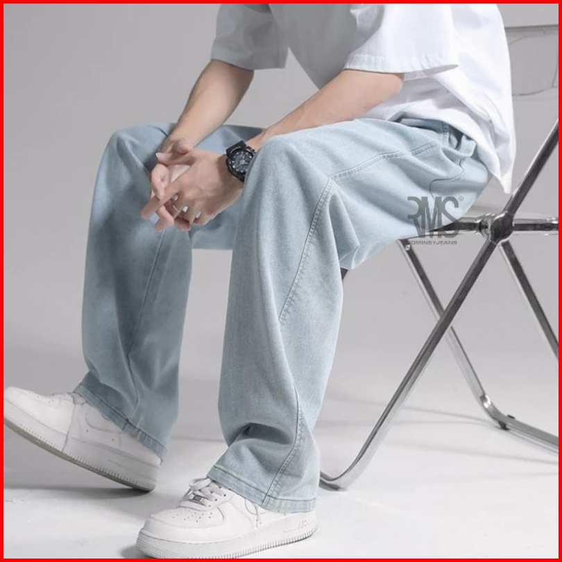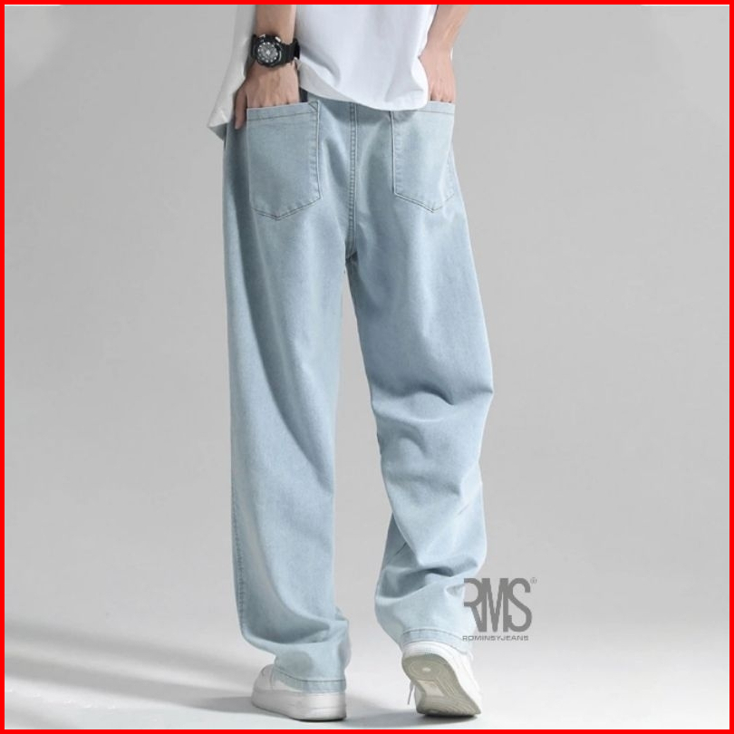 Celana Jeans Pria Celana Panjang Pria Pinggang Karet Korean Style Straight Jeans Santai Longgar Pria Oversize Celana Den