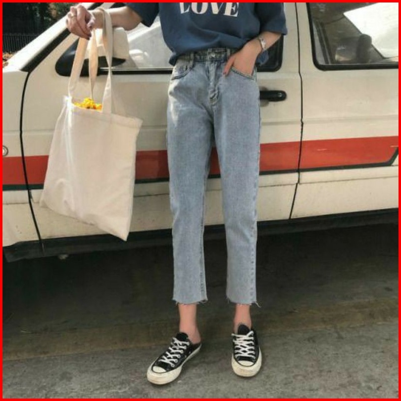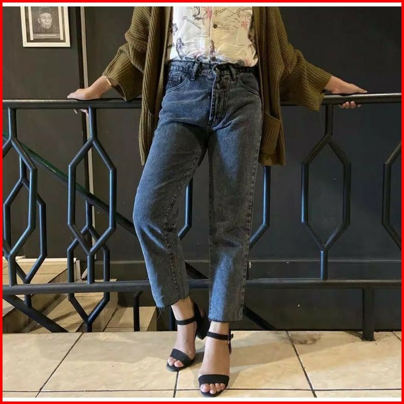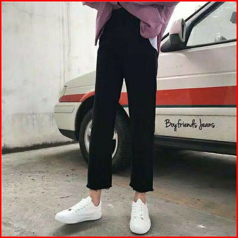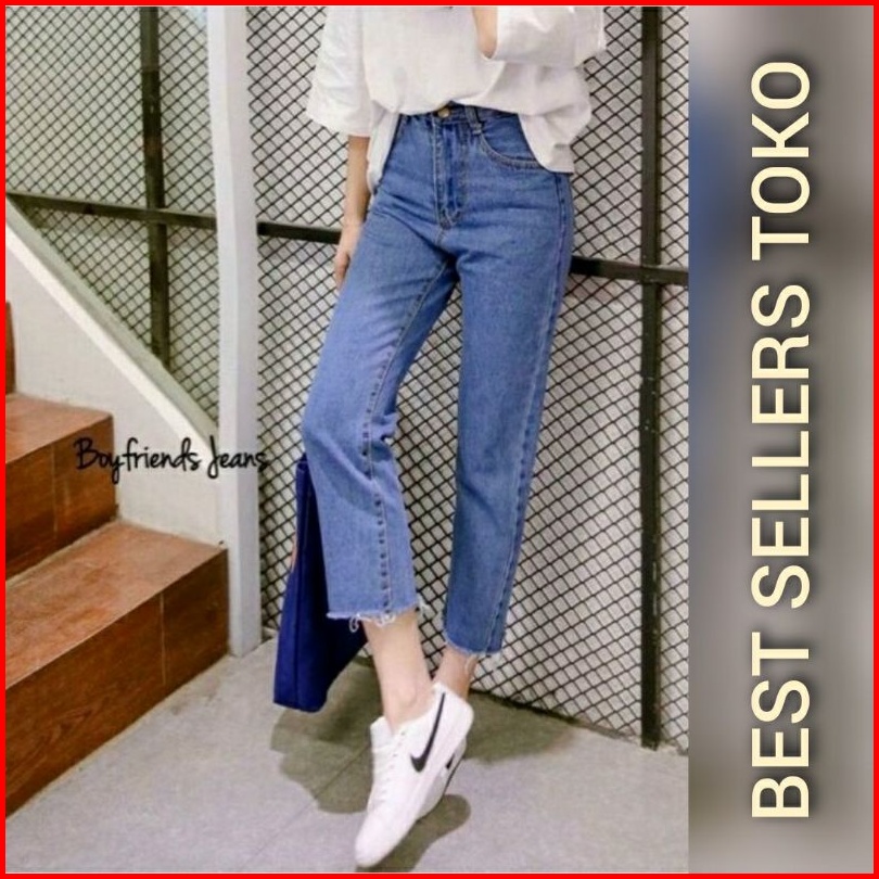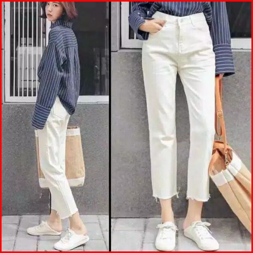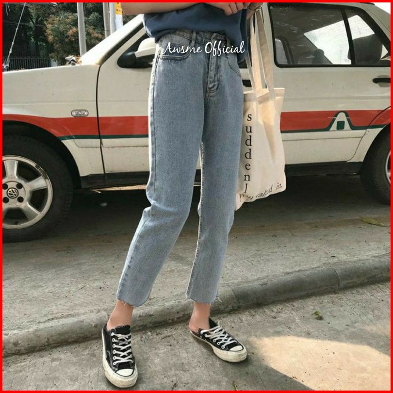 Awsme - Boyfriend Jeans Unfinished Kekinian Hw Jeans Celana Highwaist Jeans Haigh Waist Jeans Hw Murah Putih Celana Hita