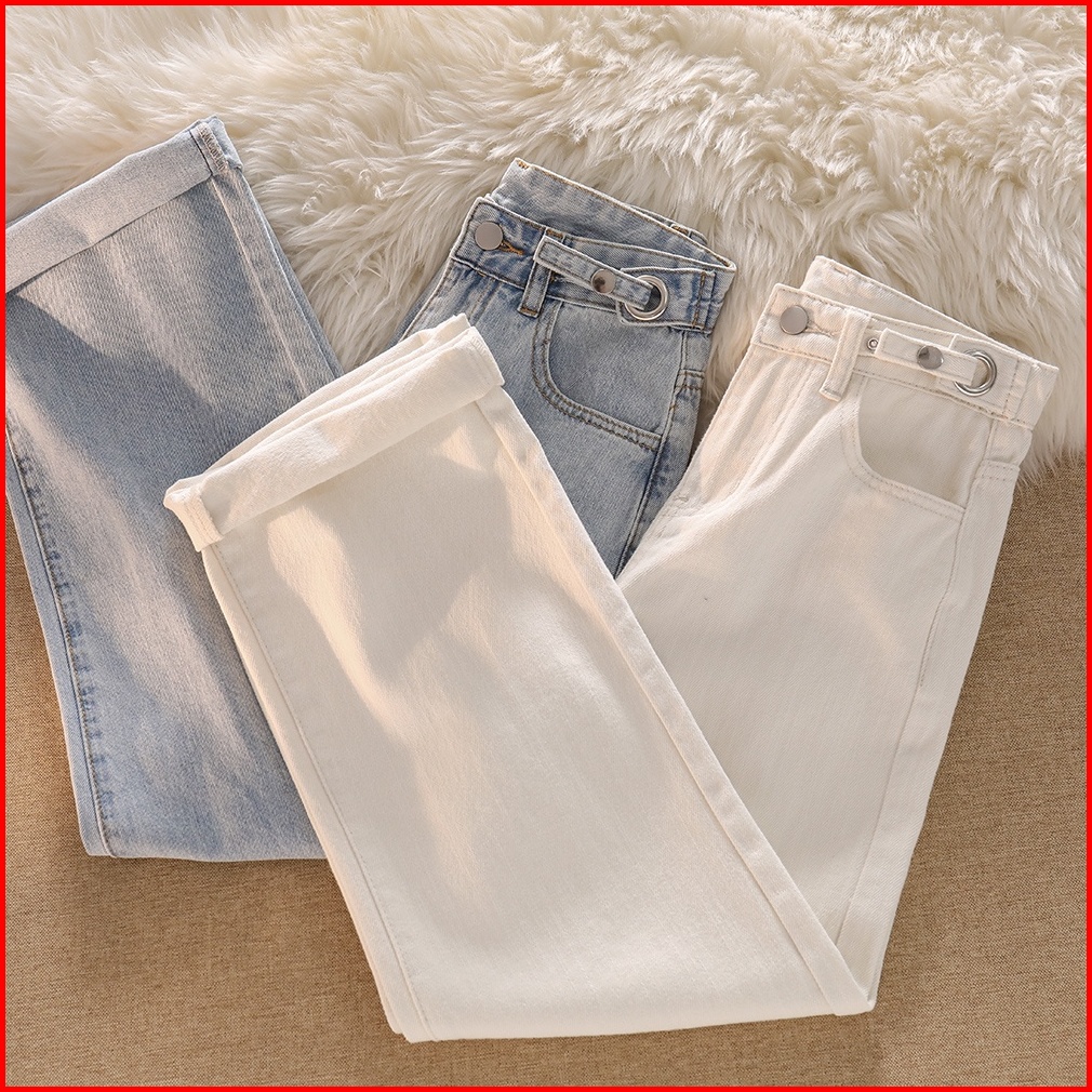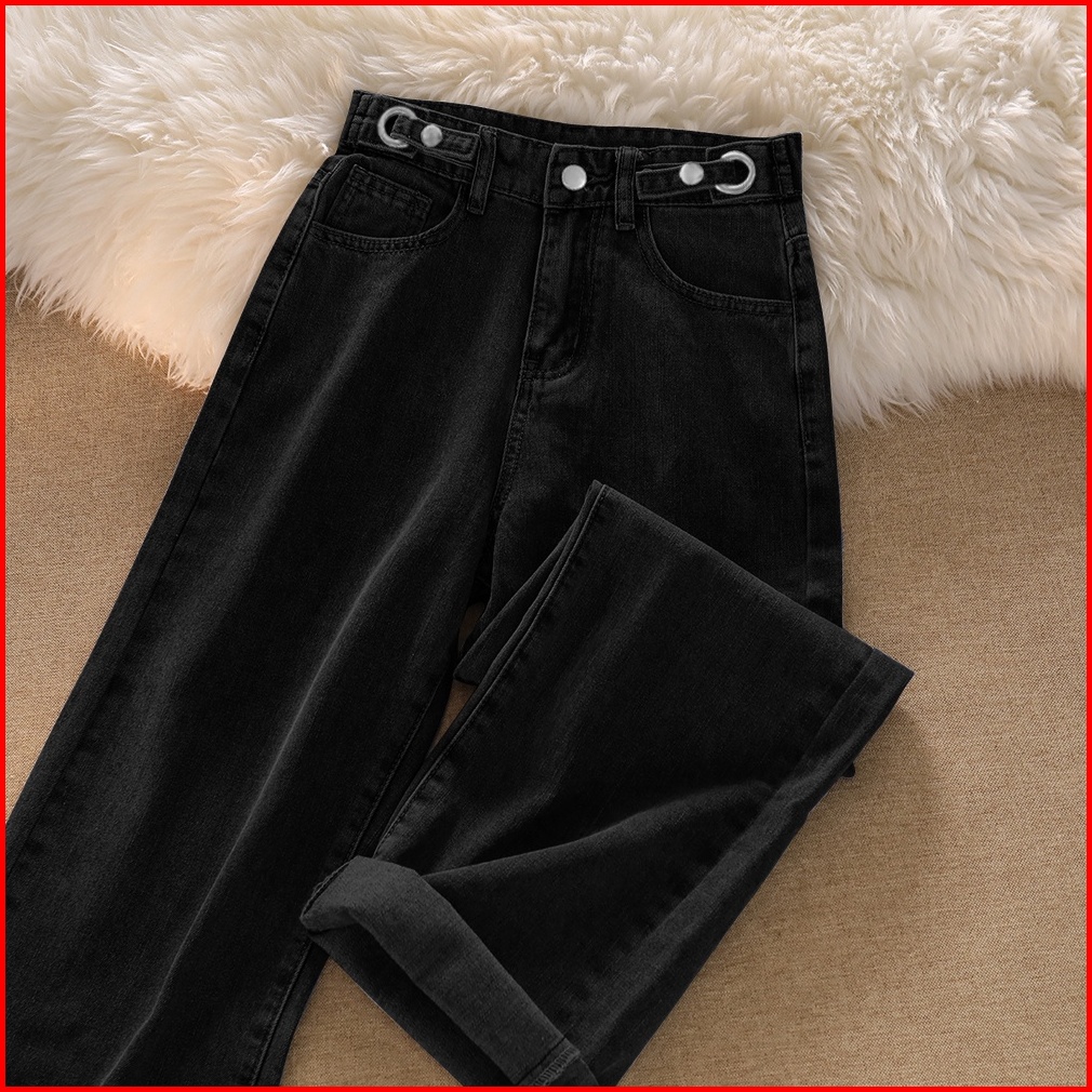 New Kram Biru Muda Hitam Korea High Waist Kekinian Straight Celana Jeans Wanita Import Realpict