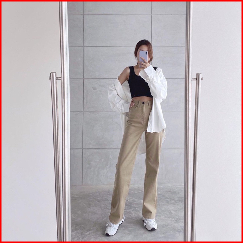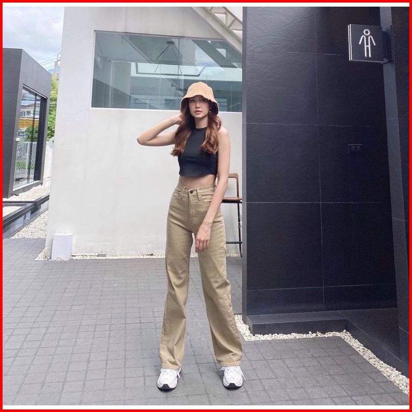 Awsme - Loose Peanuts Jeans Celana Highwaist Loose Jeans Hw Loose Jeans Wanita Korean Haigh Waist Jeans Polos Basic