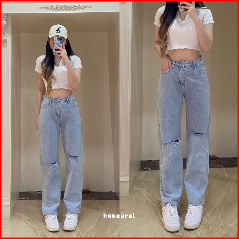 Rose Jeans - Celana Baggy Jeans Ripped Unfinished Korean Style Xs - Xxl