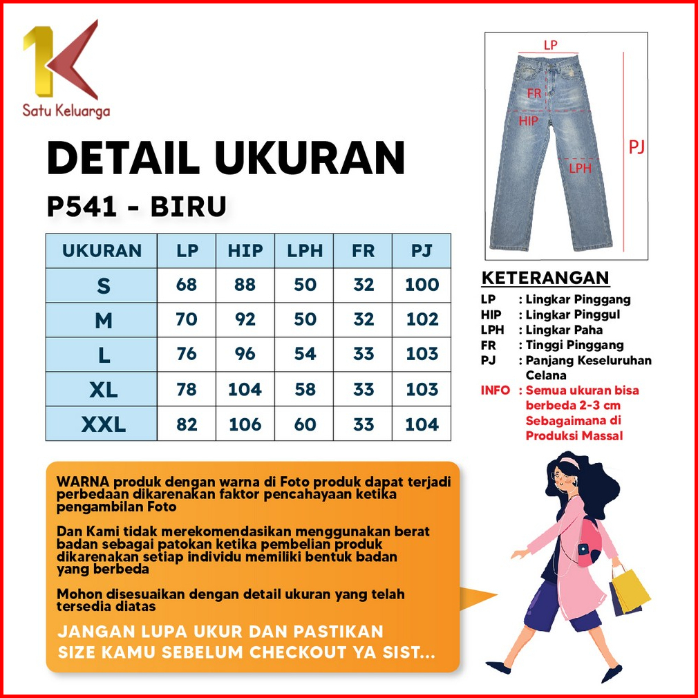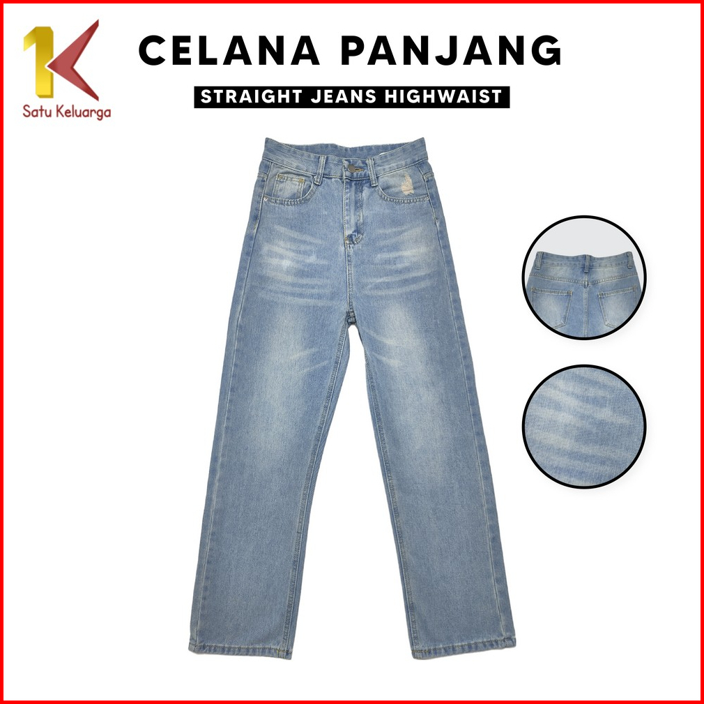 1k Celana Panjang Wanita Straight Jeans High Waist P541 Celana Denim Model Lurus Hw Longgar Straight Cut Fashion